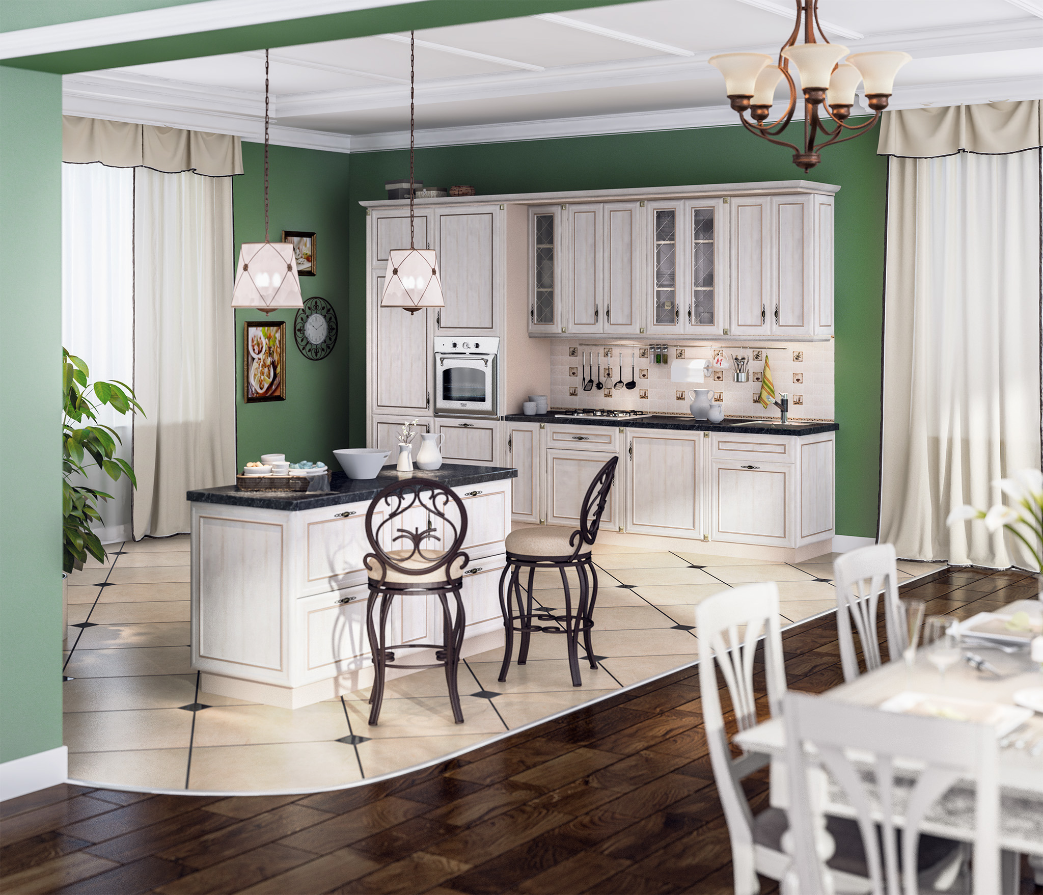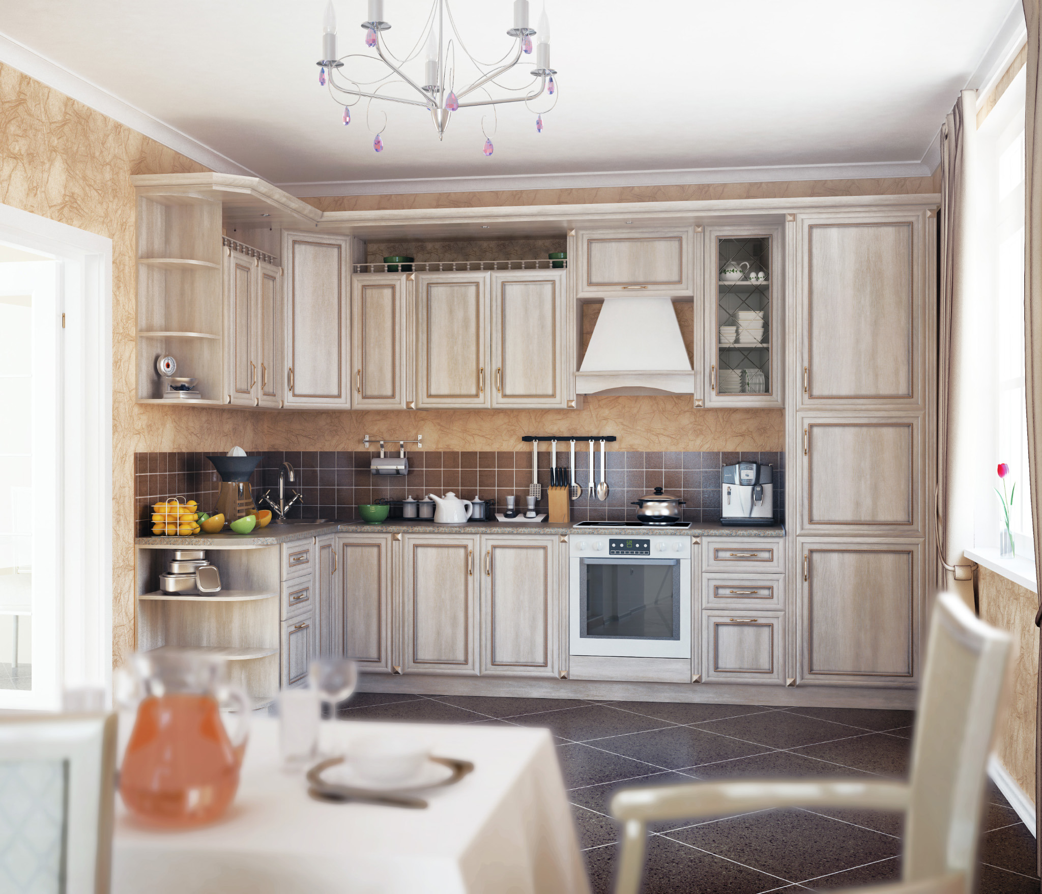 Кухни от классики до современных решений. Светлые тона, натуральные оттенки, яркие акценты.
