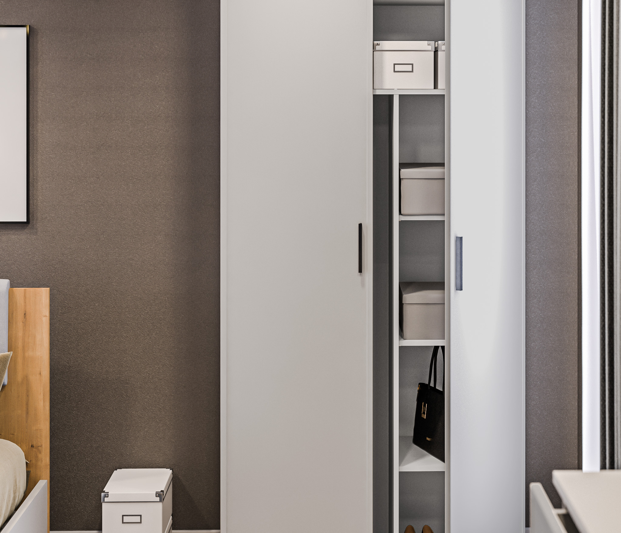 Универсальная и современная система хранения. Шкаф выполнен в современном лаконичном дизайне и будет уместен в интерьере гостиной, спальни, кабинета.