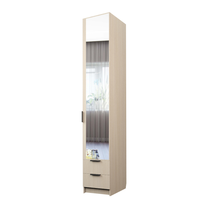 Шкаф-пенал с зеркалом, с 2-мя ящиками ЭШ1-4-РП-2я Зс (Дуб молочный)