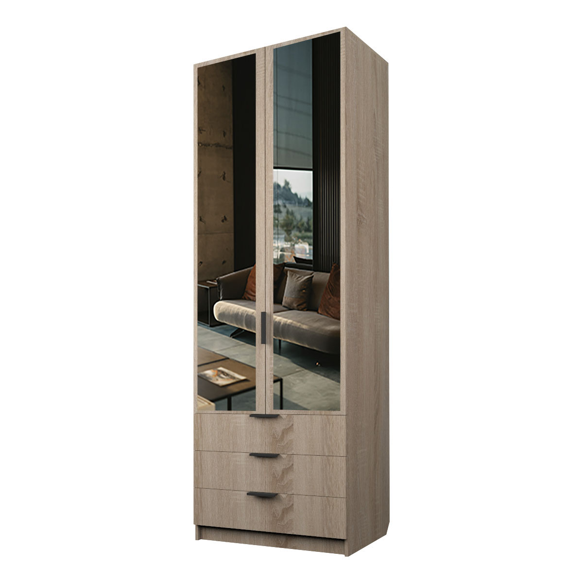 Шкаф 2-х дверный с зеркалами и 3-мя ящиками ЭШ3-8-РП-3я ЗсЗс (Дуб Сонома)
