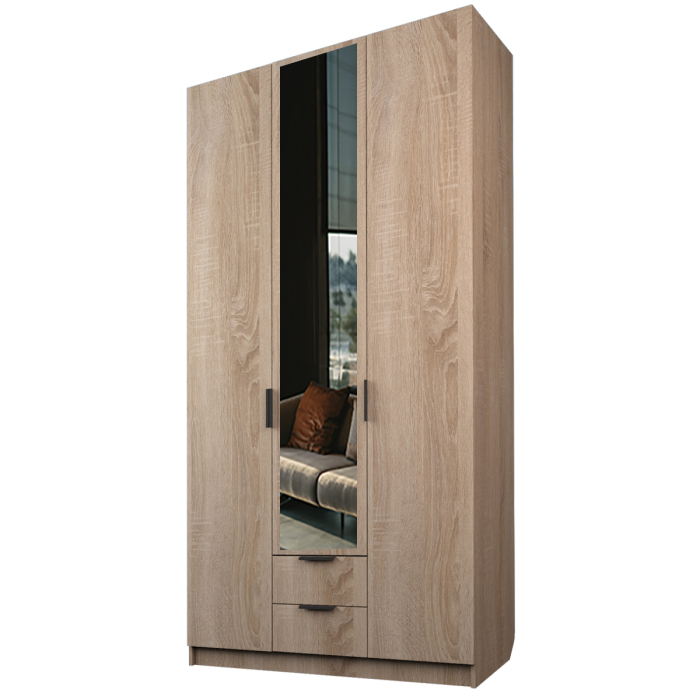 Шкаф 3-х дверный с зеркалом и 2-мя ящиками ЭШ3-12-РП-2я Зс (Дуб Сонома)