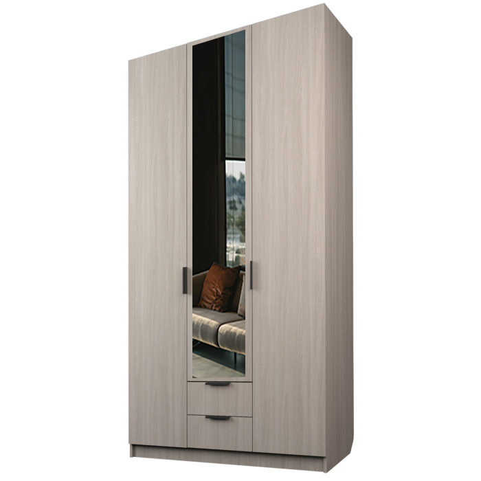Шкаф 3-х дверный с зеркалом и 2-мя ящиками ЭШ3-12-РП-2я Зс (Ясень шимо светлый)