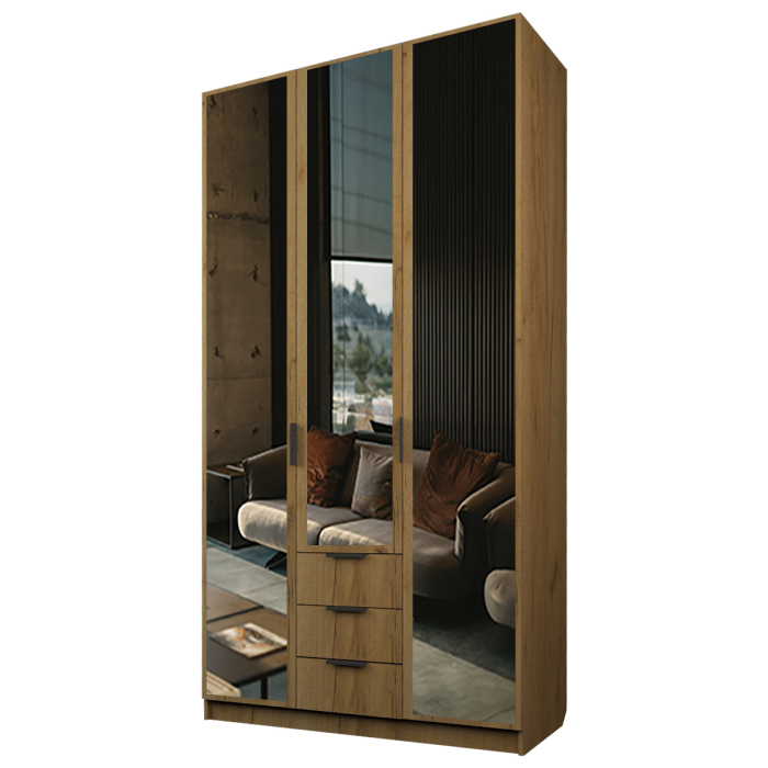 Шкаф 3-х дверный с зеркалами и 3 ящиками ЭШ3-12-РП-3я ЗсЗсЗс (Дуб Крафт золотой)