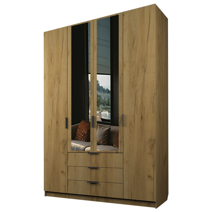 Шкаф 4-х дверный с зеркалами и 3 ящиками ЭШ3-16-РП-3я ЗсЗс (Дуб Крафт золотой)