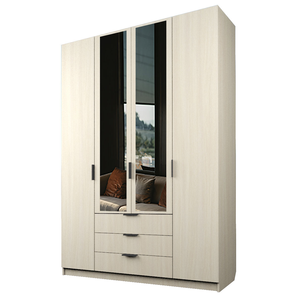 Шкаф 4-х дверный с зеркалами и 3 ящиками ЭШ3-16-РП-3я ЗсЗс (Дуб молочный)