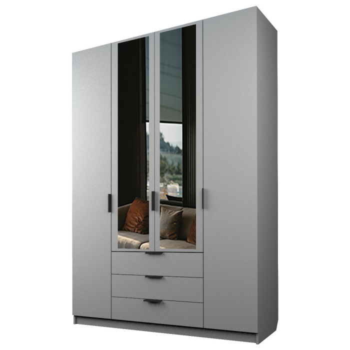 Шкаф 4-х дверный с зеркалами и 3 ящиками ЭШ3-16-РП-3я ЗсЗс (Серый)
