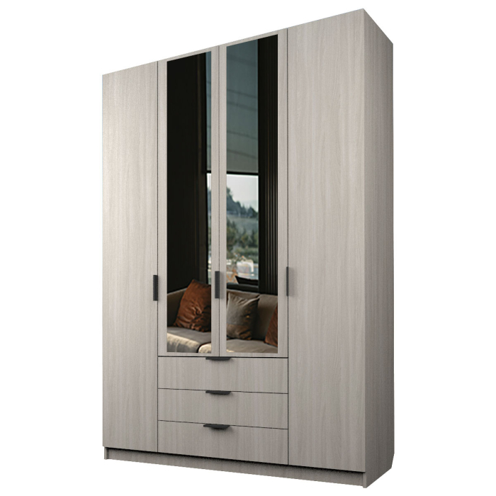 Шкаф 4-х дверный с зеркалами и 3 ящиками ЭШ3-16-РП-3я ЗсЗс (Ясень шимо светлый)