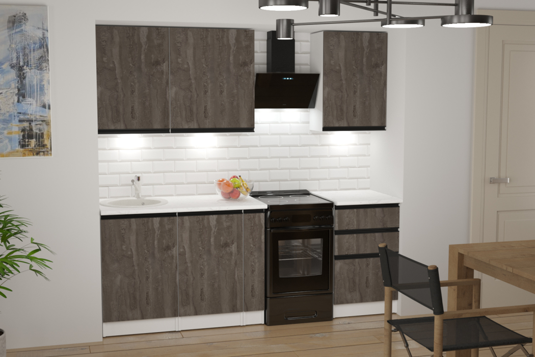 Кухонный гарнитур Ноктюрн стандарт 1,6 м Бетон темный ЛДСП (Бетон)