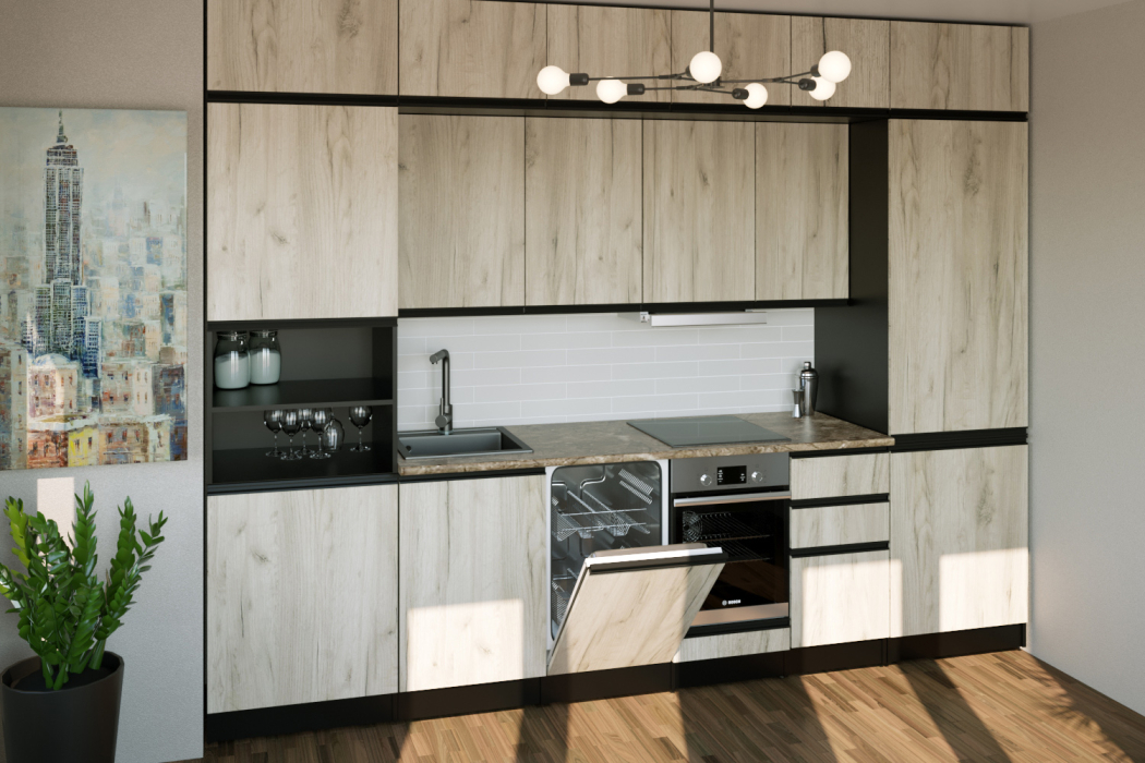 Кухонный гарнитур поставляется в разобранном виде с инструкцией по сборке и необходимой фурнитурой.