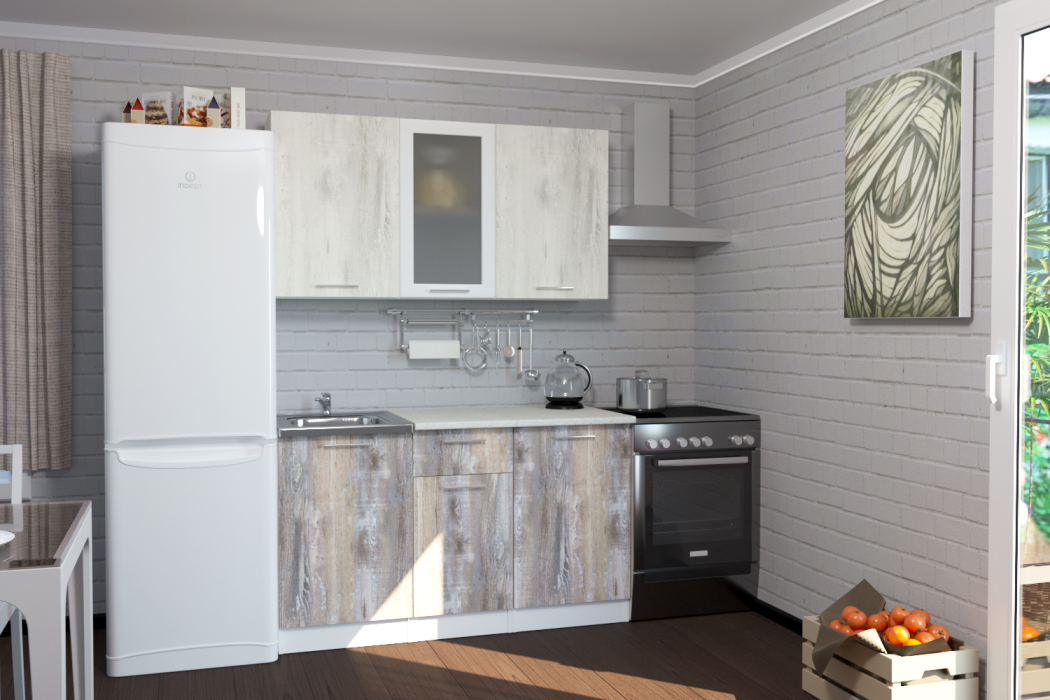 Кухонный гарнитур Инна медиум 1,4 м Пайн Белый/Пайн Экзотик ЛДСП (Бетон пайн белый)