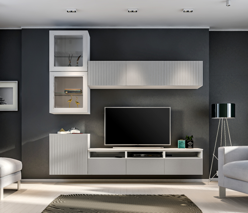 Гостиная (стенка) Тренд Белый/МДФ Джаз Светло-серый/МДФ Modern Светло-серый (Белый/Серый)