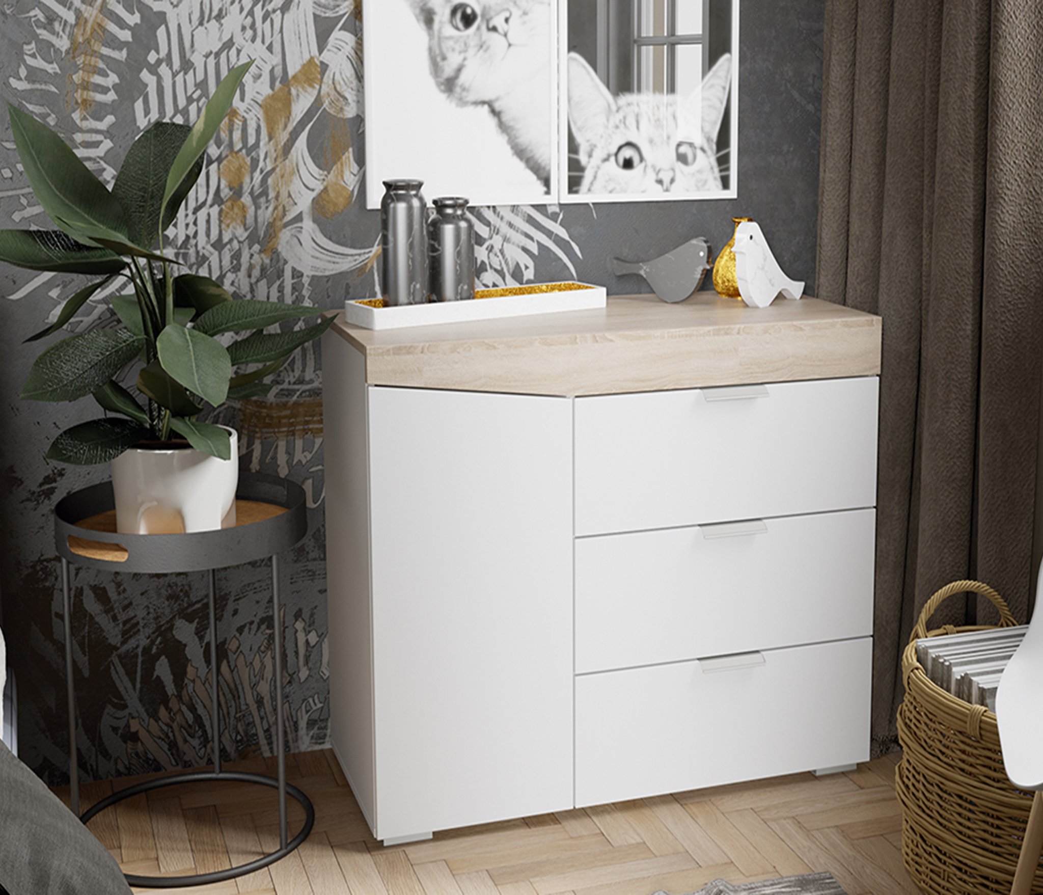 Комод Тип 1 (Дуб сонома/Ясень белый)