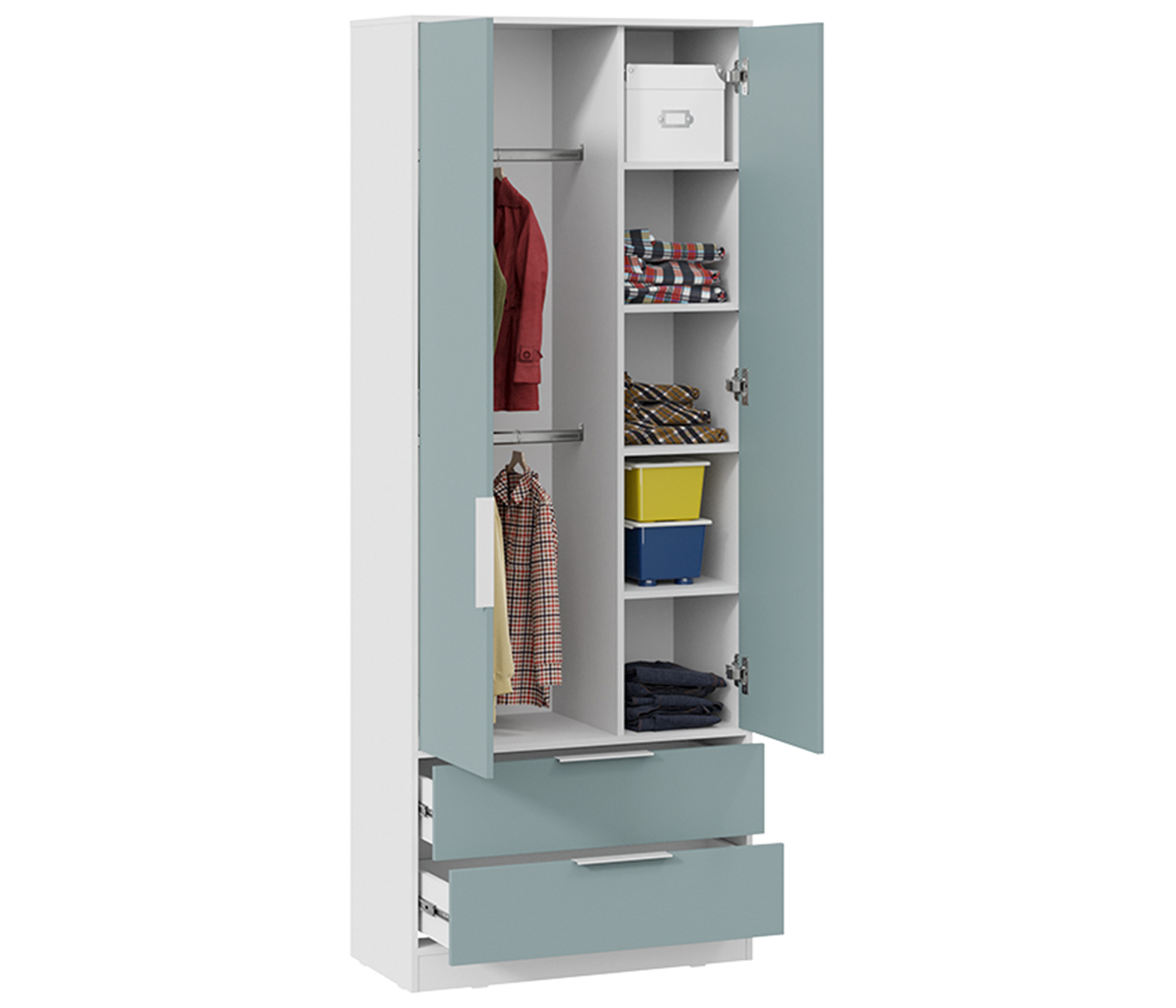 Шкаф для одежды Марли (Белый, Серо-голубой)