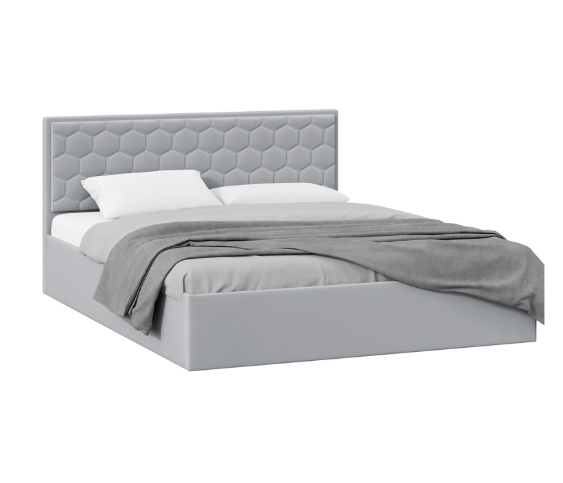 Кровать Порто с ПМ без заглушины, Велюр (Серебристый)