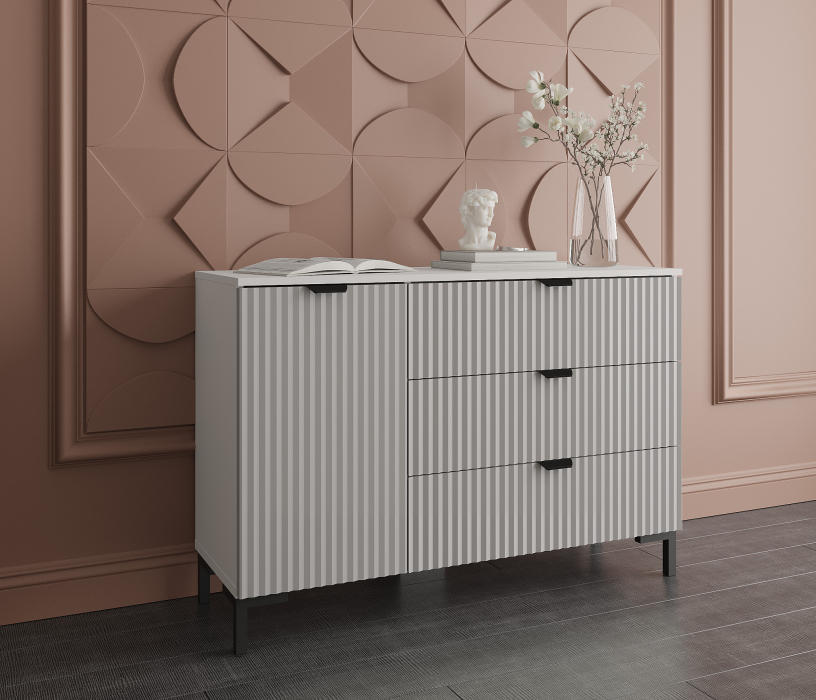Комод Тренд СБ-3446 3 ящика, 1 дверь Белый Альпийский/МДФ Джаз Серый (Белый,Серый)