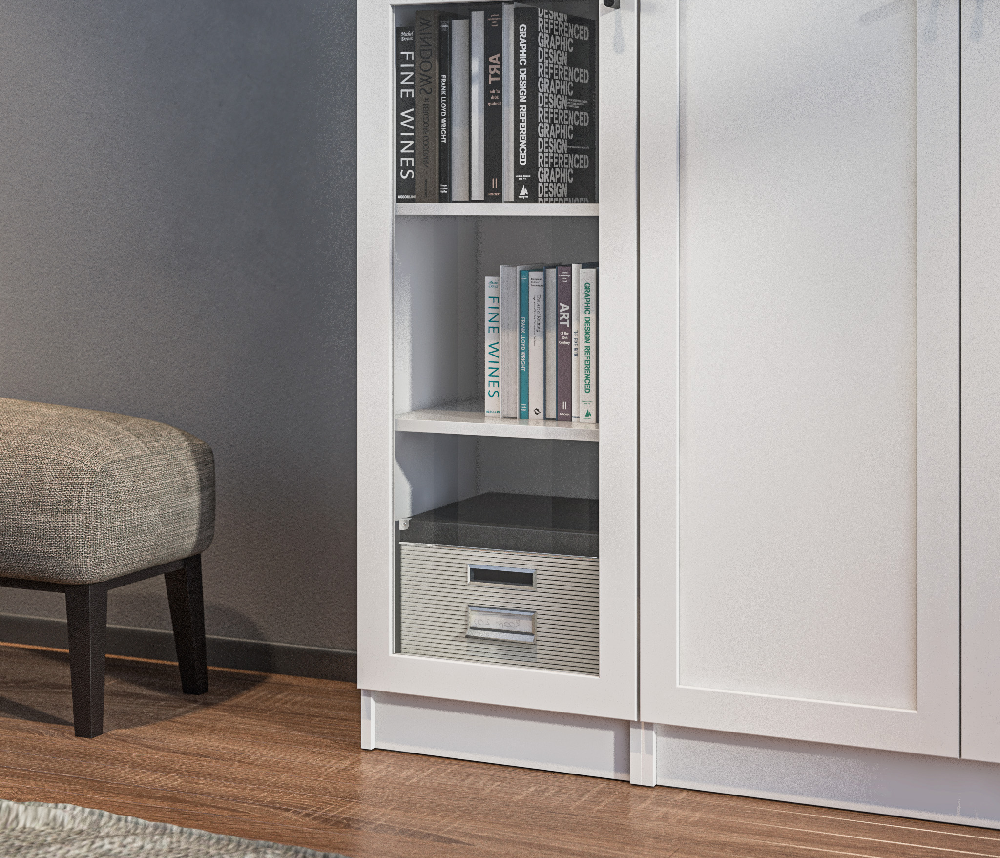 Шкаф Белый со стеклом Твин СБ-3372+СБ3373 Код 00000332943