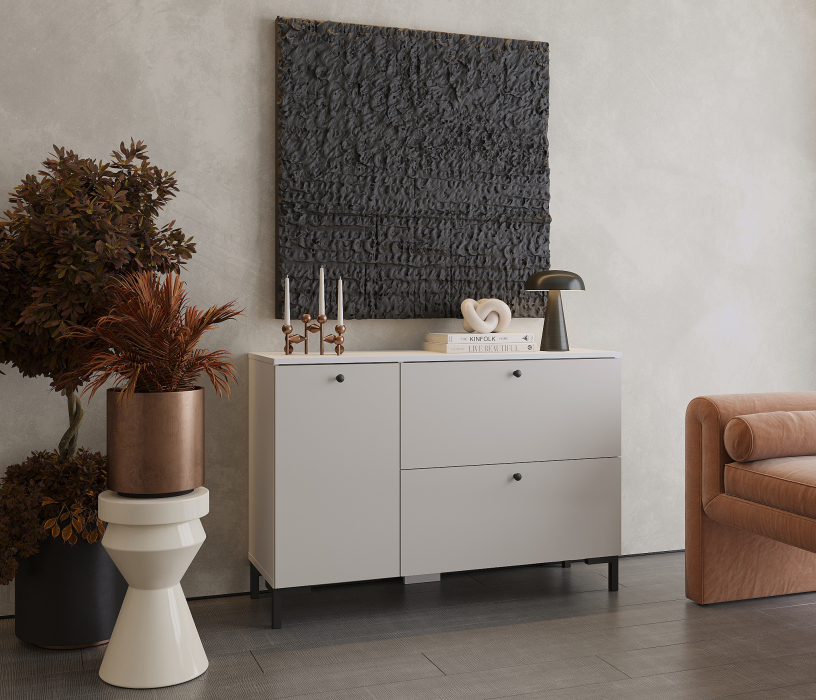 Комод Тренд СБ-3447 2 ящика, 1 дверь Белый Аьпийский/Серый Перламутровый (Серый Перламутровый)