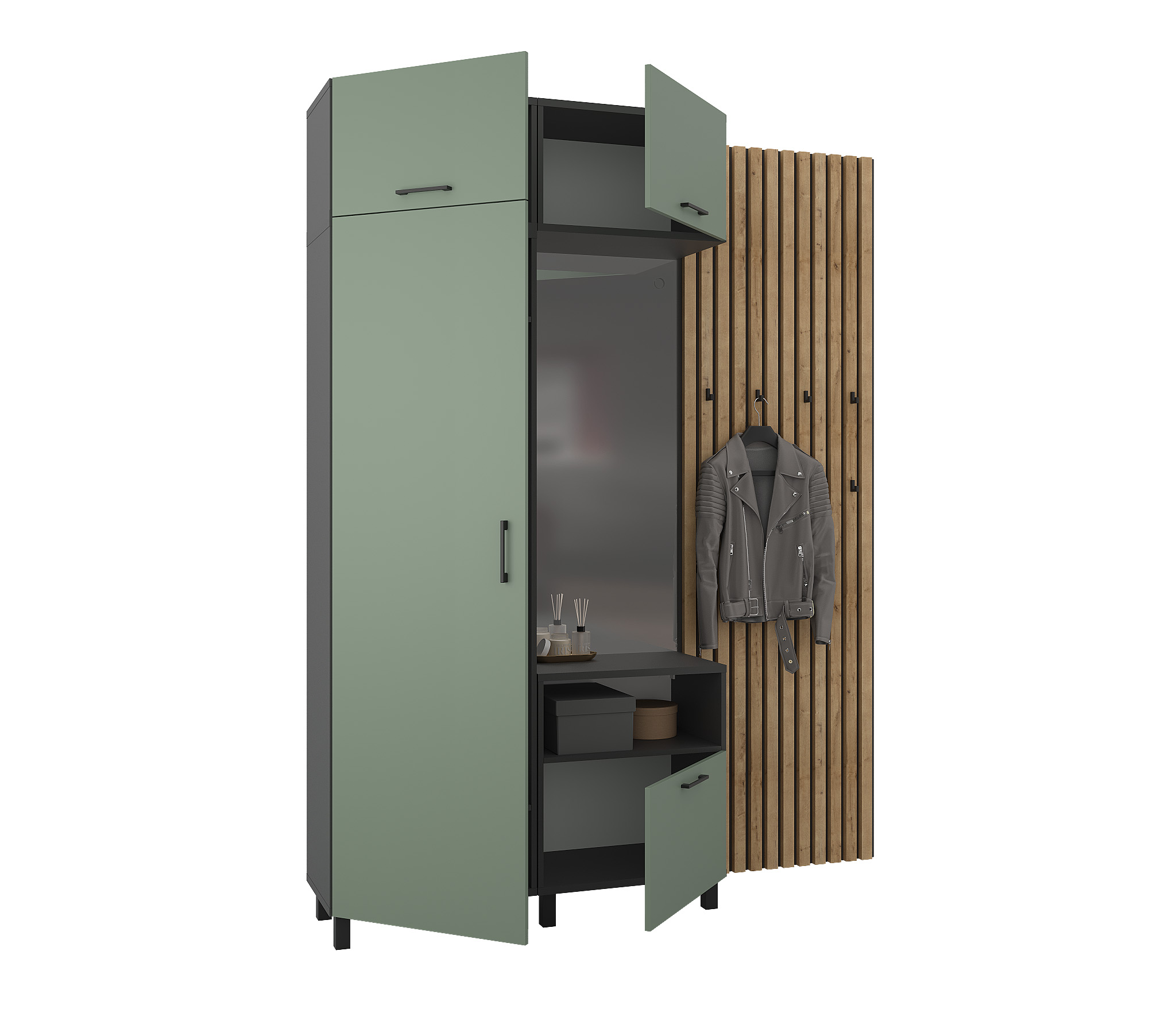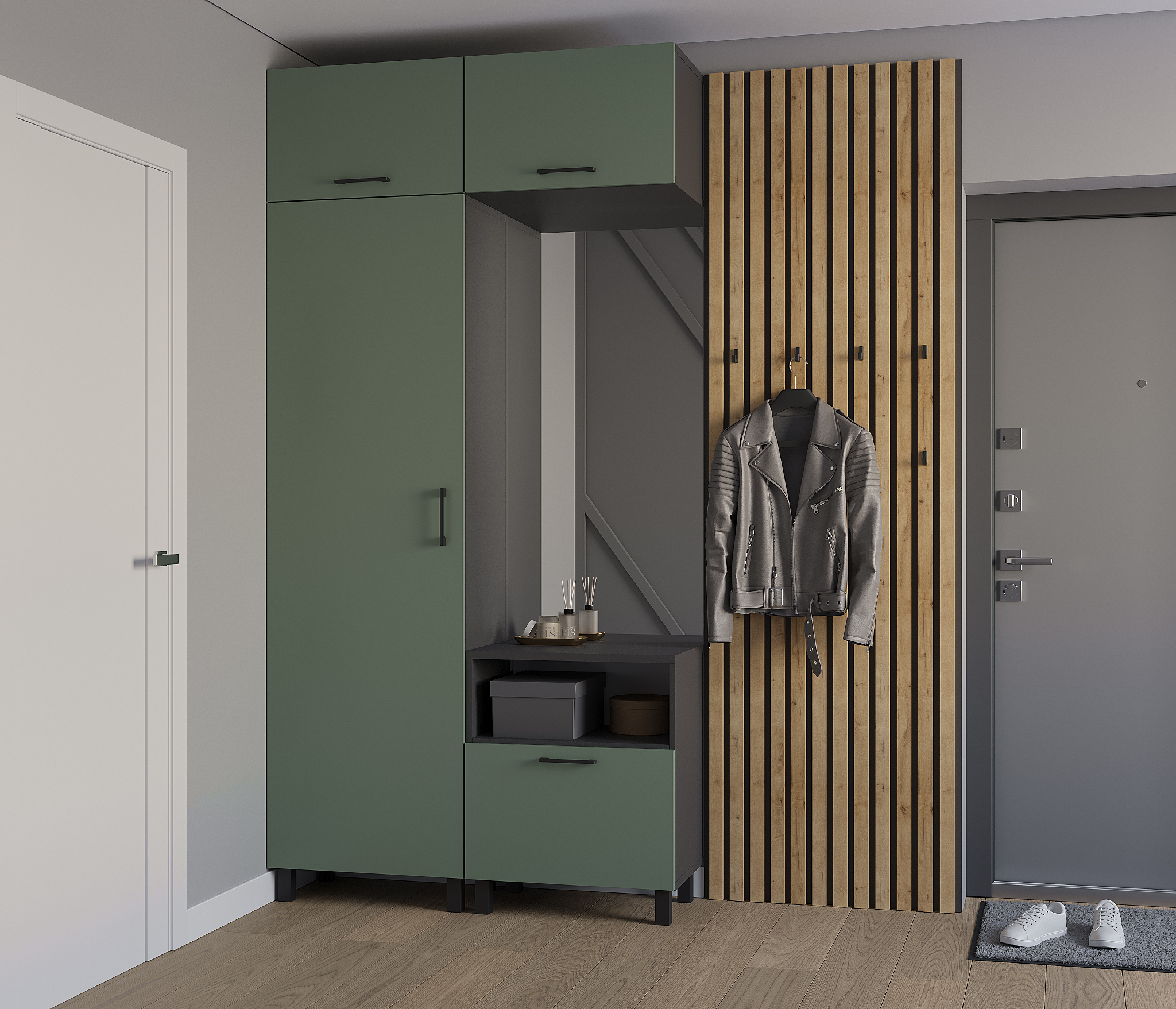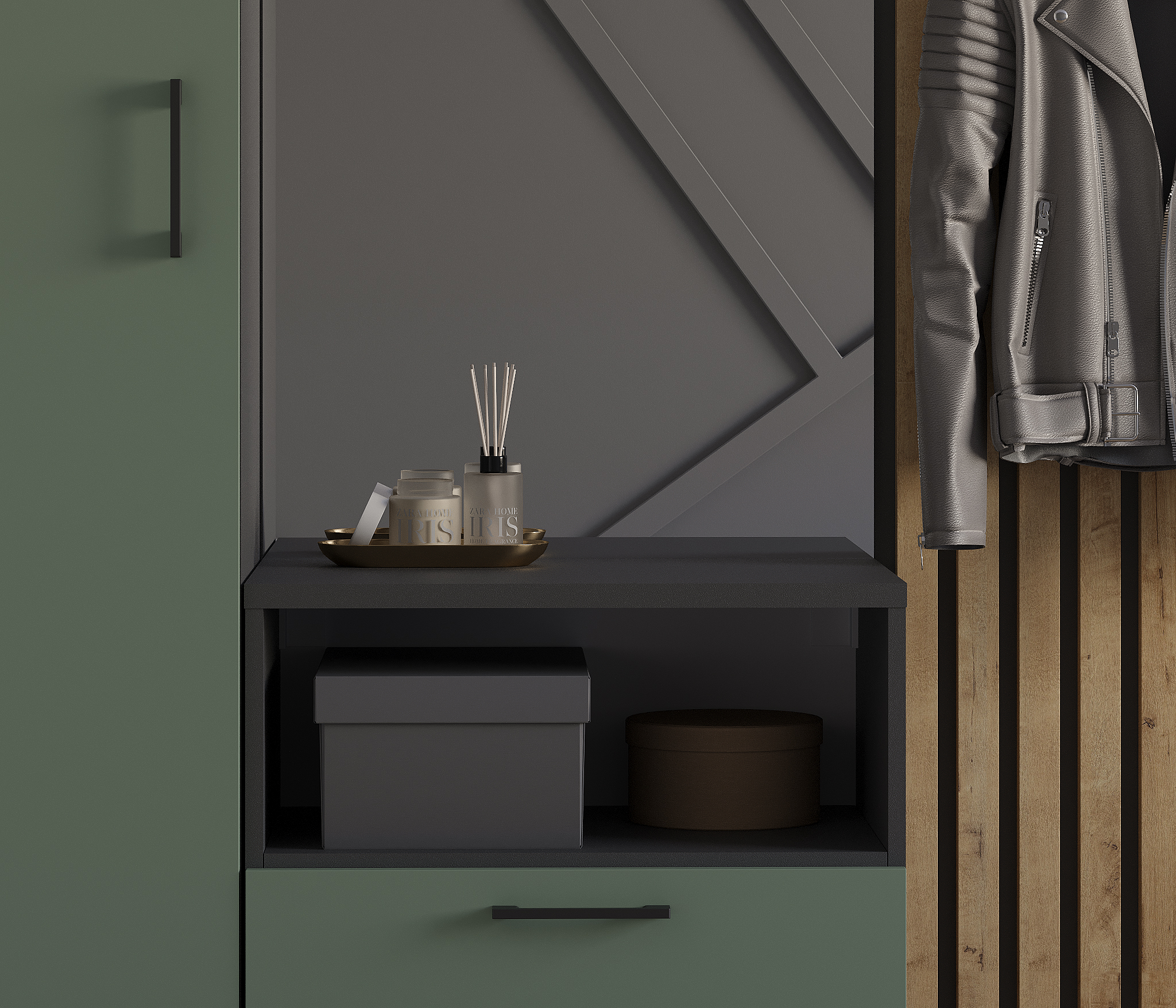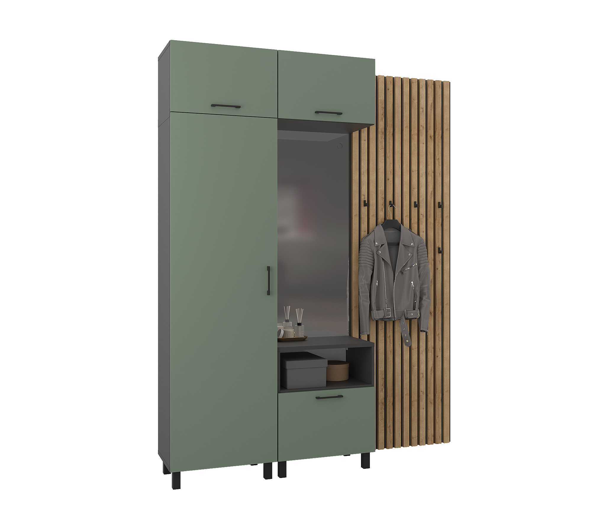Прихожая Тренд с рейками Диамант серый/Белла Камыш (Камыш)