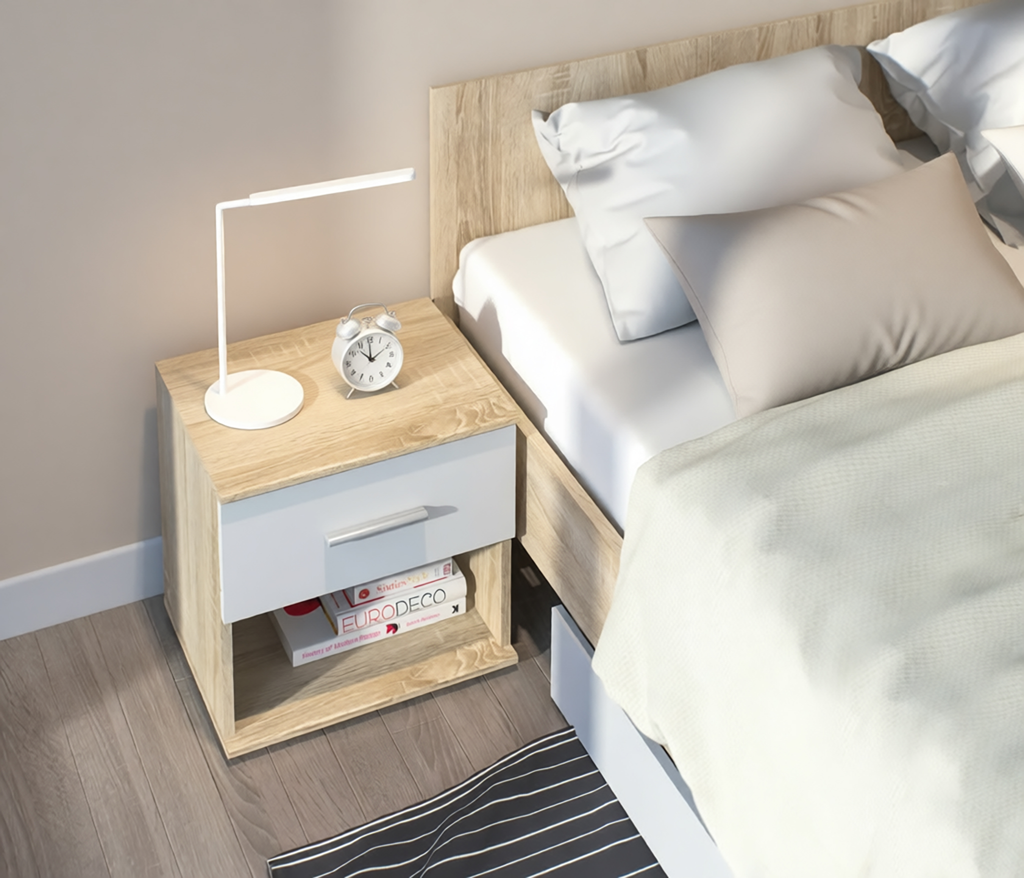Тумба прикроватная Мамбо СБ-2683 (Дуб Сонома/Белый)