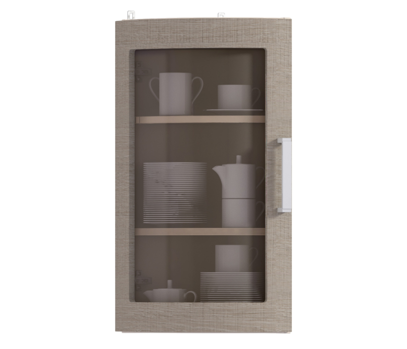 Полка торцевая с гнутой витриной Регина Песочный Дуб Сантана Светлый Код 00000131339
