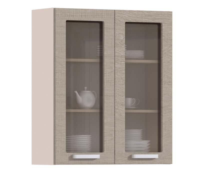 Полка с 2-мя витринами Регина 926 Песочный Дуб Сантана Светлый 800 Код 00000131386