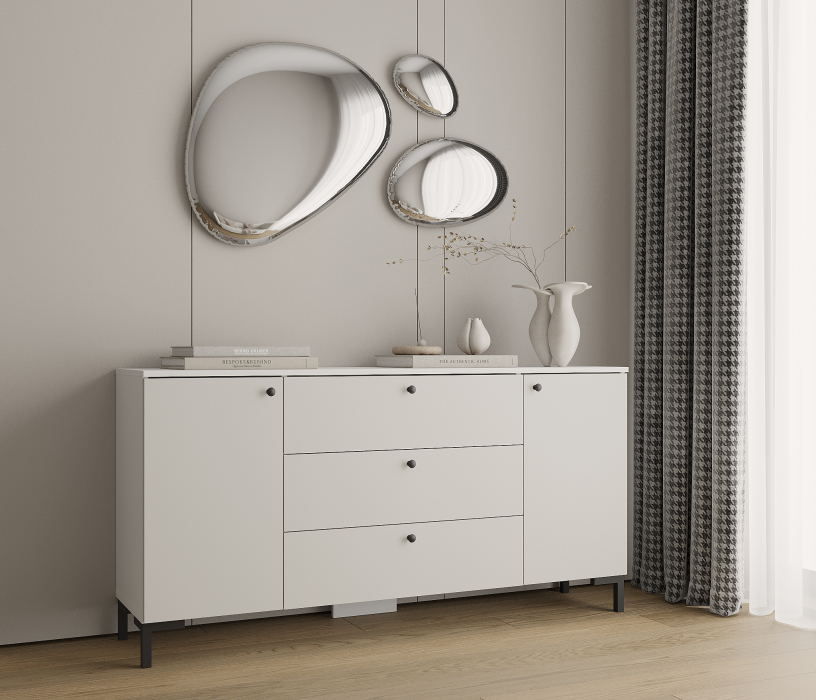 Комод Тренд СБ-3443 3 ящика, 2 двери Белый/Белла Серый Перламутровый (Серый Перламутровый)
