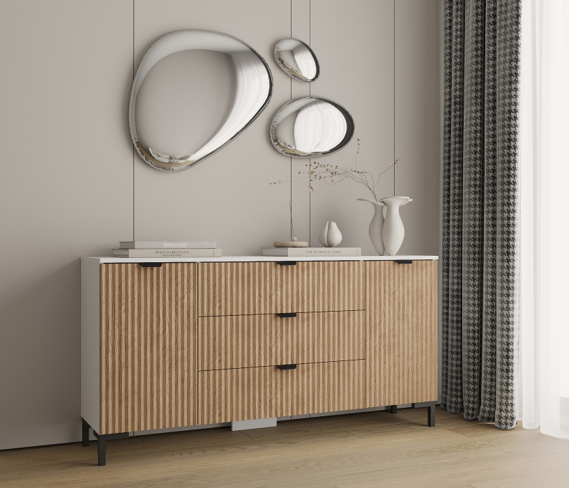 Комод Тренд СБ-3443 3 ящика, 2 двери Белый/МДФ Джаз Акация светлая (Белый/Акация светлая)