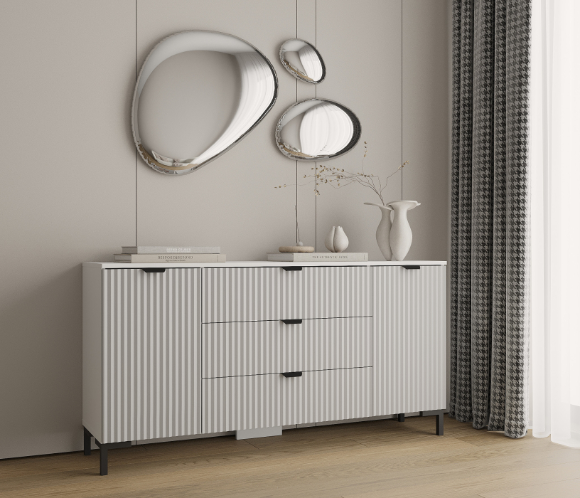 Комод Тренд СБ-3443 3 ящика, 2 двери Белый/МДФ Джаз Серый (Белый/Серый)