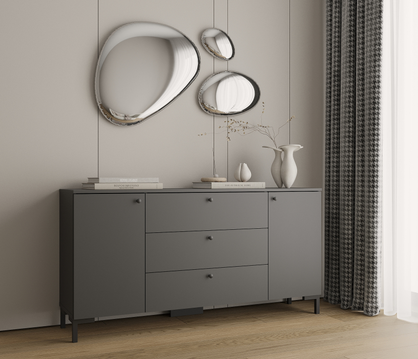 Отзывы о Столплит Комод Тренд СБ-3443 3 ящика, 2 двери Диамант серый (ручка-кнопка)