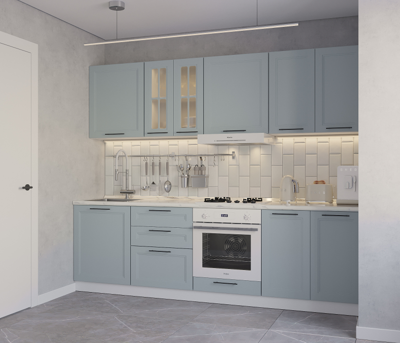 Столешница, стеновая панель, мойка, сушка и бытовая техника приобретаются отдельно.