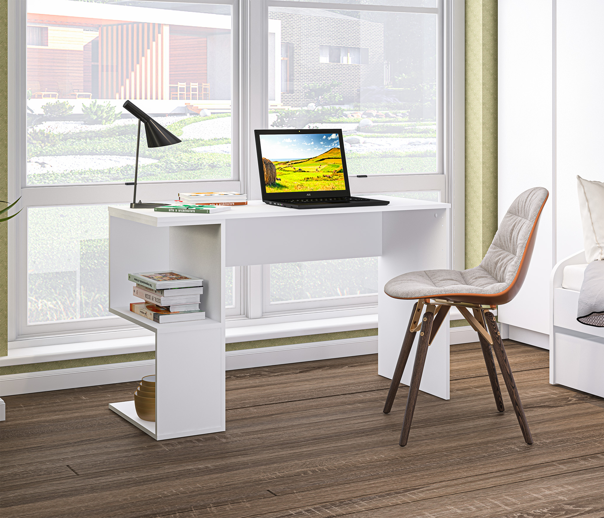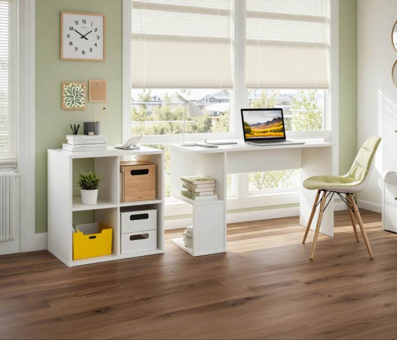 Комплект Кито (стол и стеллаж), белый (Белый)