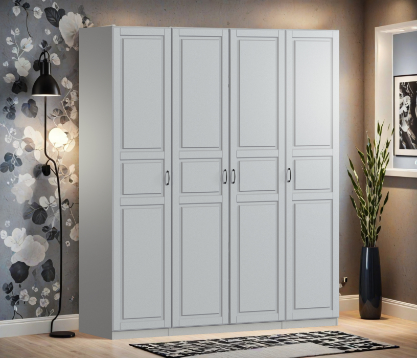 Отзывы о Столплит Шкаф четырехдверный Макс 2000 мм, вариант №1 (ЛДСП/МДФ) Бархатно светло-серый