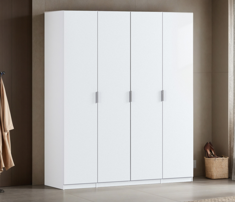 Шкаф четырехдверный Макс 2000 мм, вариант №1 (ЛДСП/МДФ) (Белый)