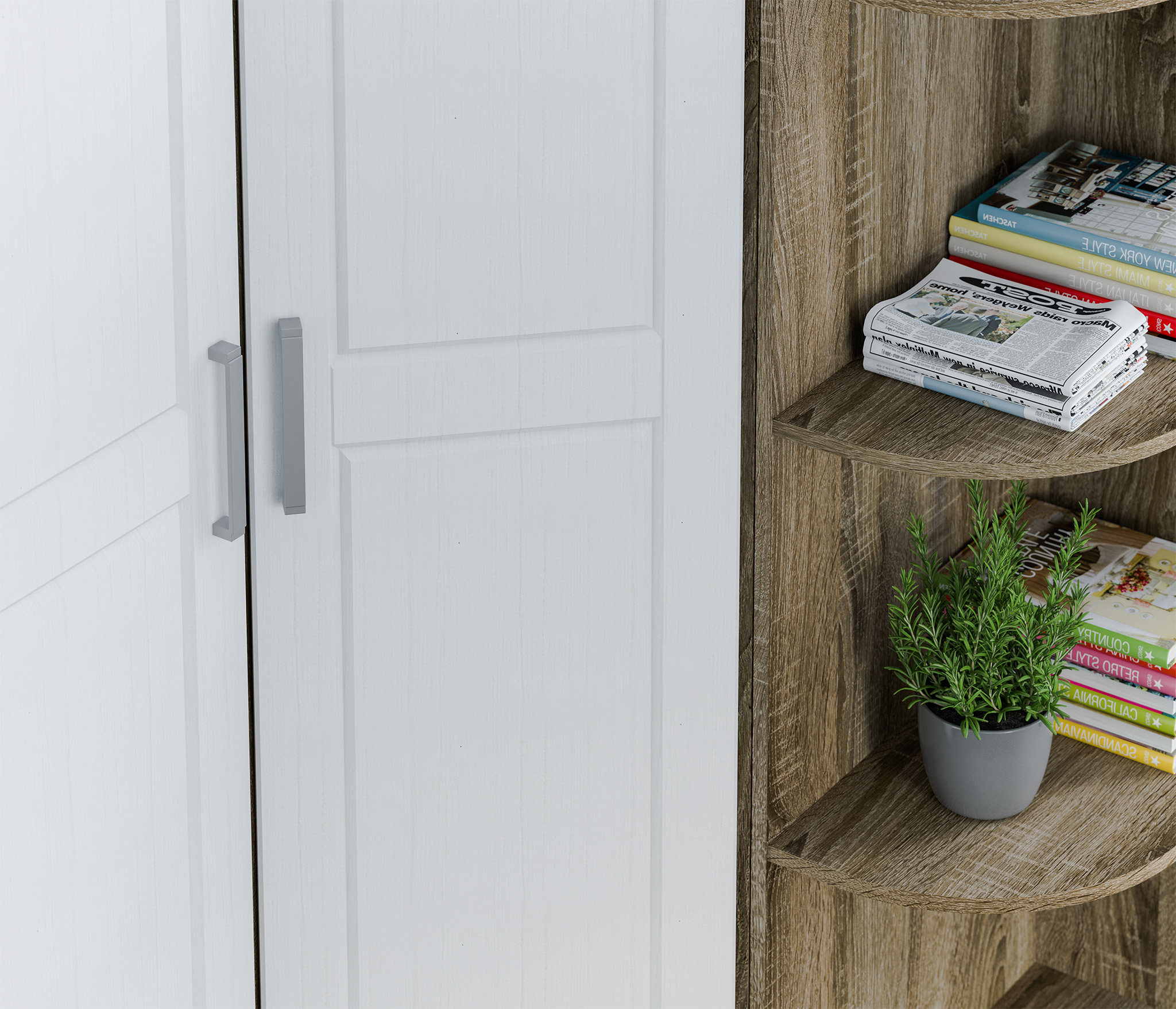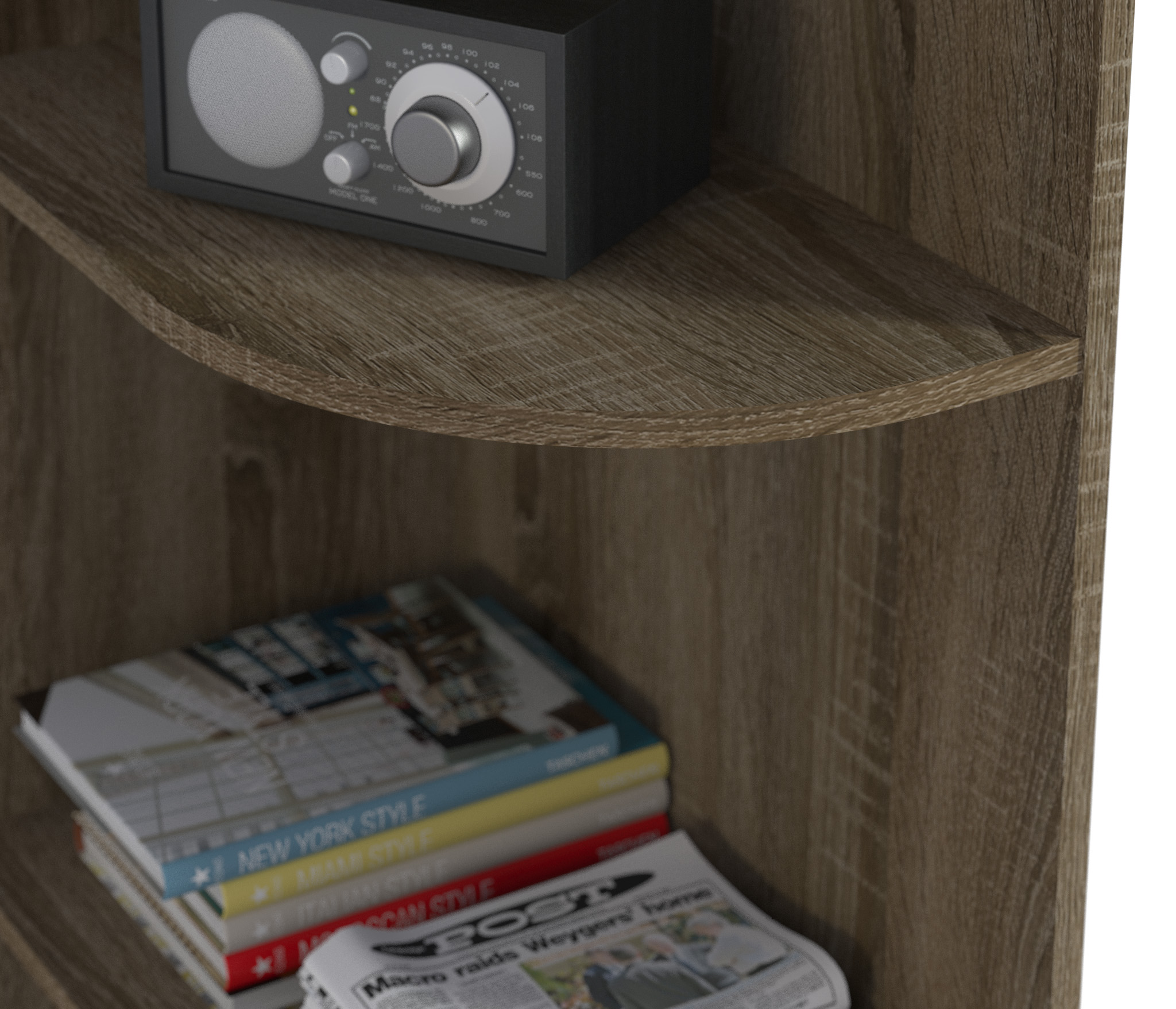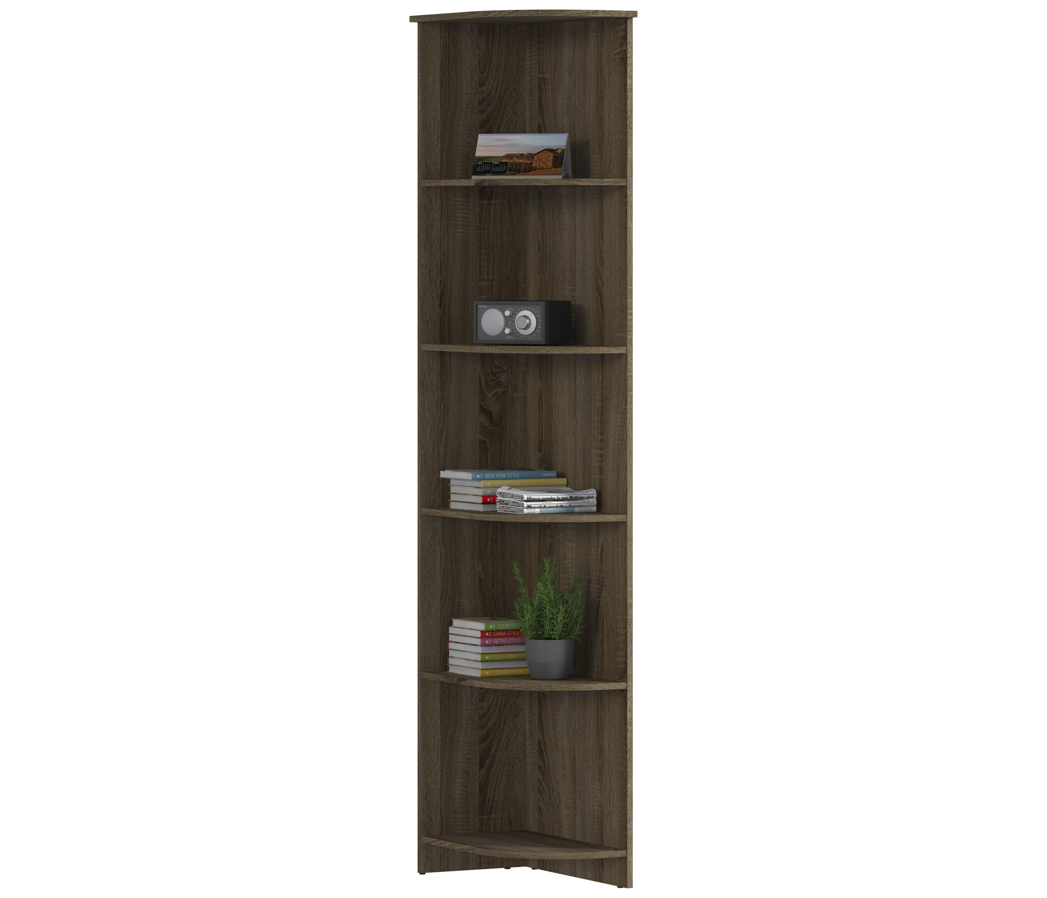 Торцевой стеллаж Илона СБ-2668 – это идеальное компактное место для хранения книг, журналов или демонстрации посуды, сувениров и других памятных предметов. Стеллаж универсален в использовании, идеально впишется в интерьер гостиной, детской, спальни и прихожей.