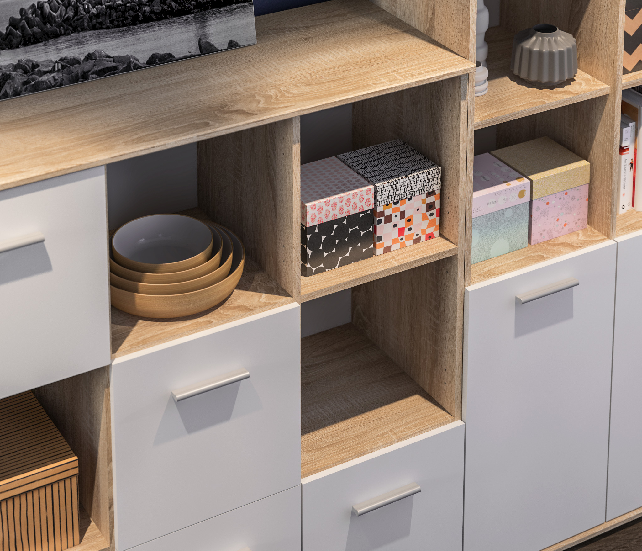 Стеллаж Мамбо СБ-2757 (Дуб Сонома/Белый)