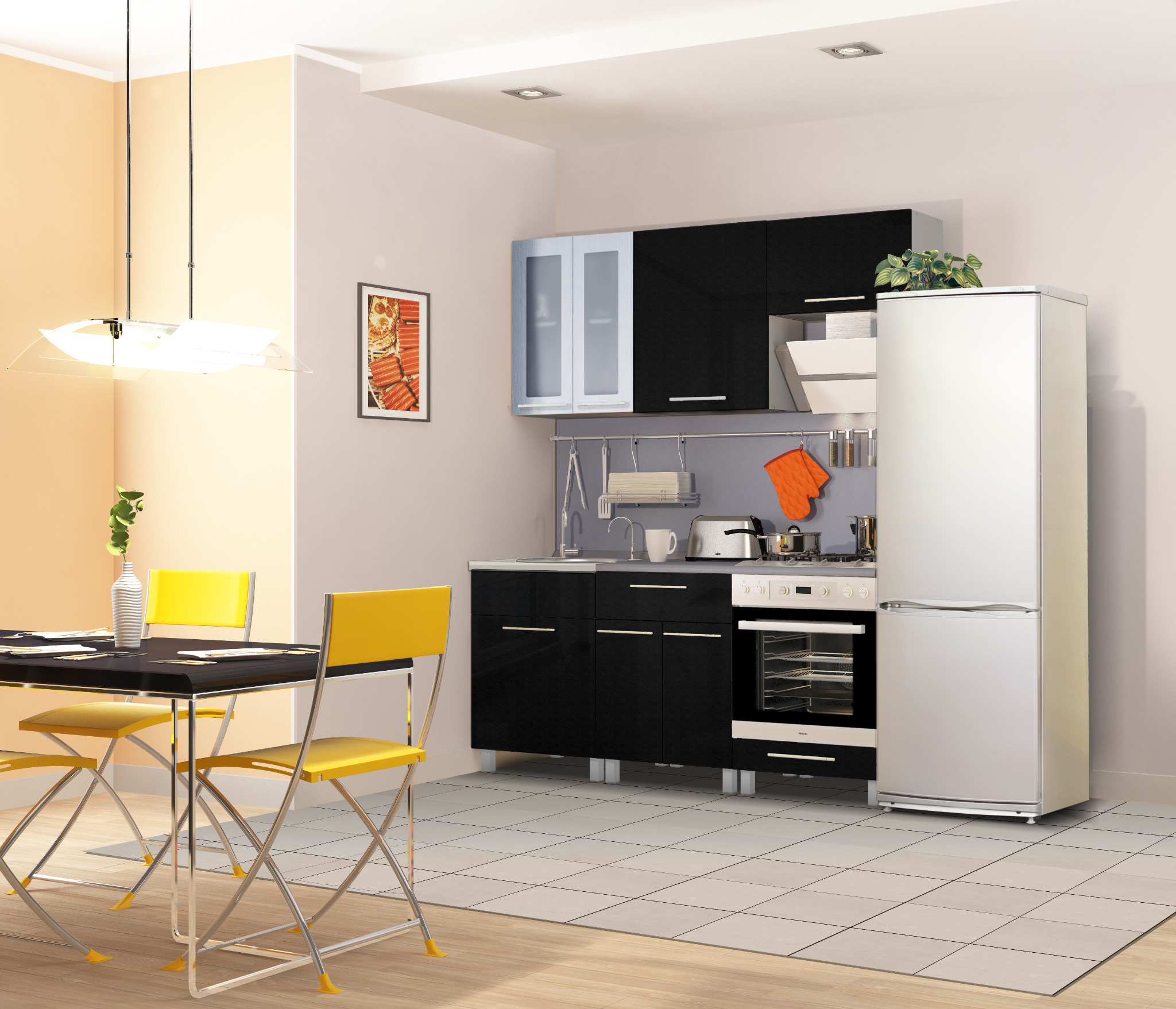 Анна Кухня 1800 Алюминий (Алюминий/Черный металлик)