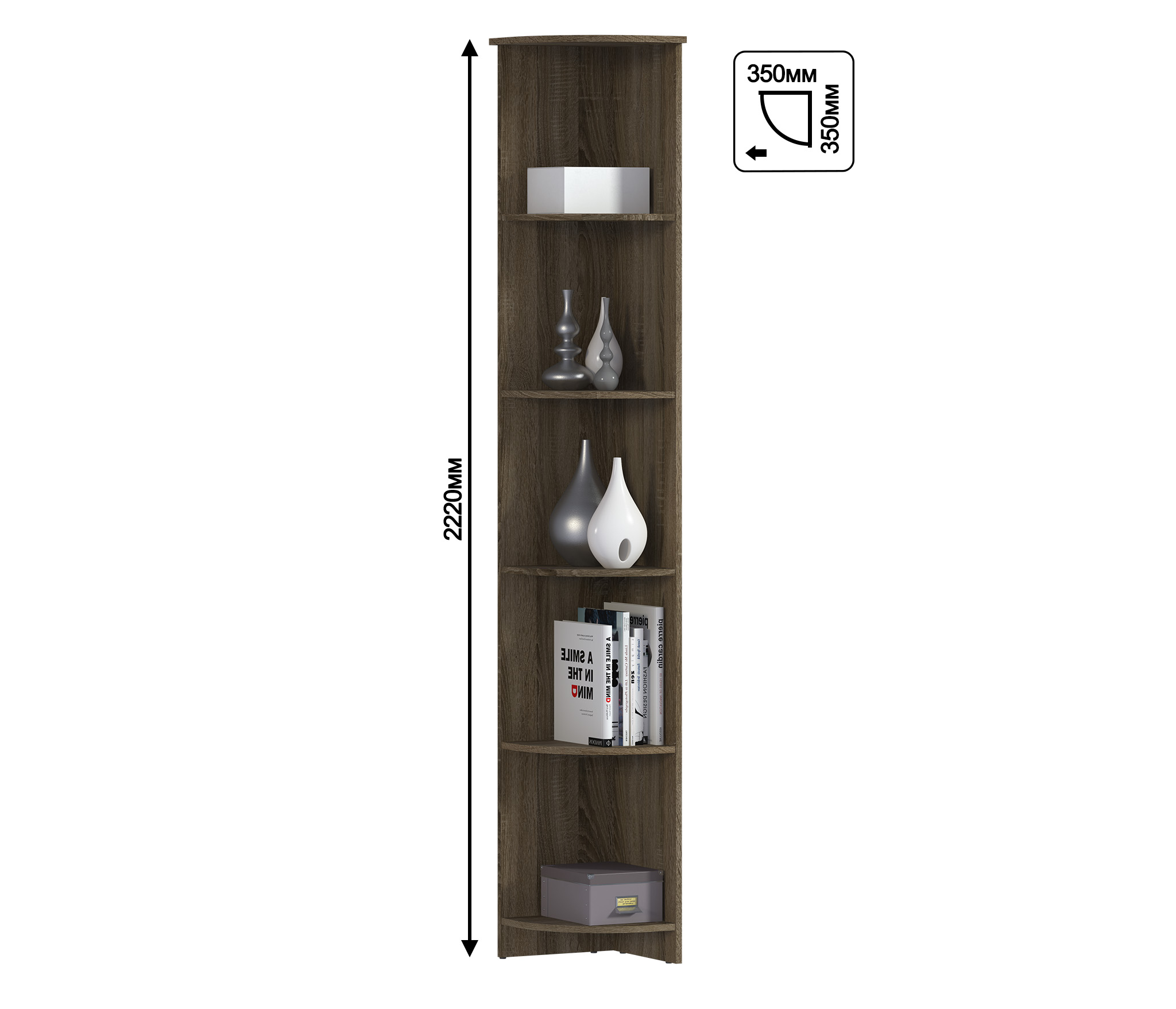Торцевой стеллаж Илона СБ-2800 – это идеальное компактное место для хранения книг, журналов или демонстрации посуды, сувениров и других памятных предметов. Стеллаж универсален в использовании, идеально впишется в интерьер гостиной, детской, спальни и прихожей.