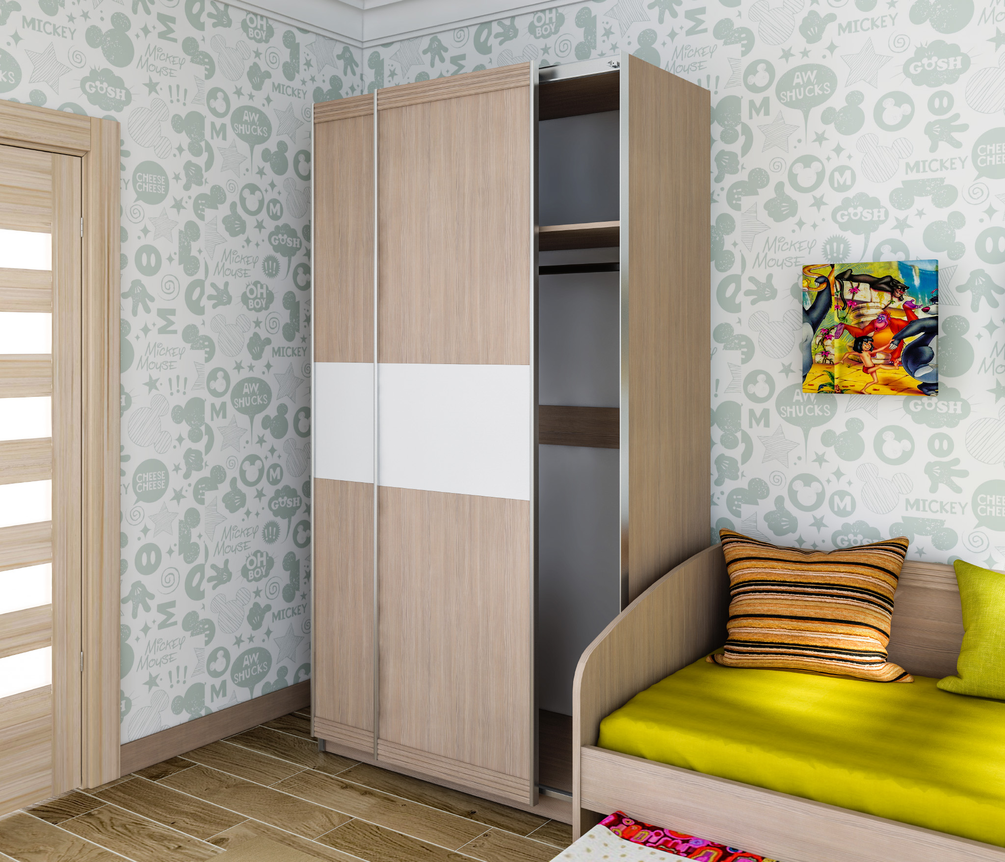 Дакота комплект со шкафом-купе (Сосна Авола Шампань/Белый глянец)