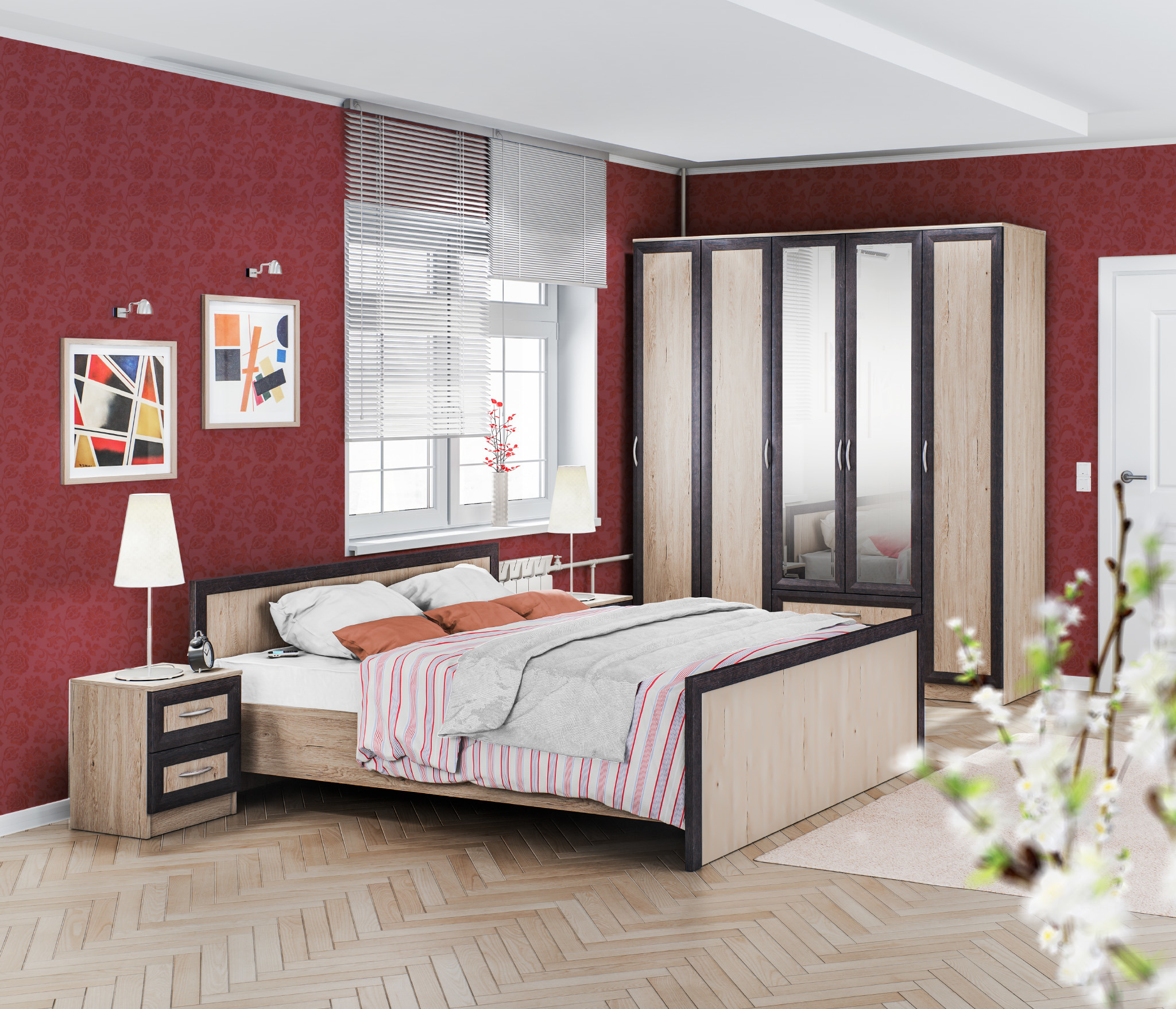 Спальный гарнитур Джорджия благодаря стильному сочетанию светлого древесного оттенка корпуса и темного обрамления фасадов будет универсальном решением для любого интерьера. В модульной системе все продумано как для создания комфорта и уюта, так и для полноценного отдыха.