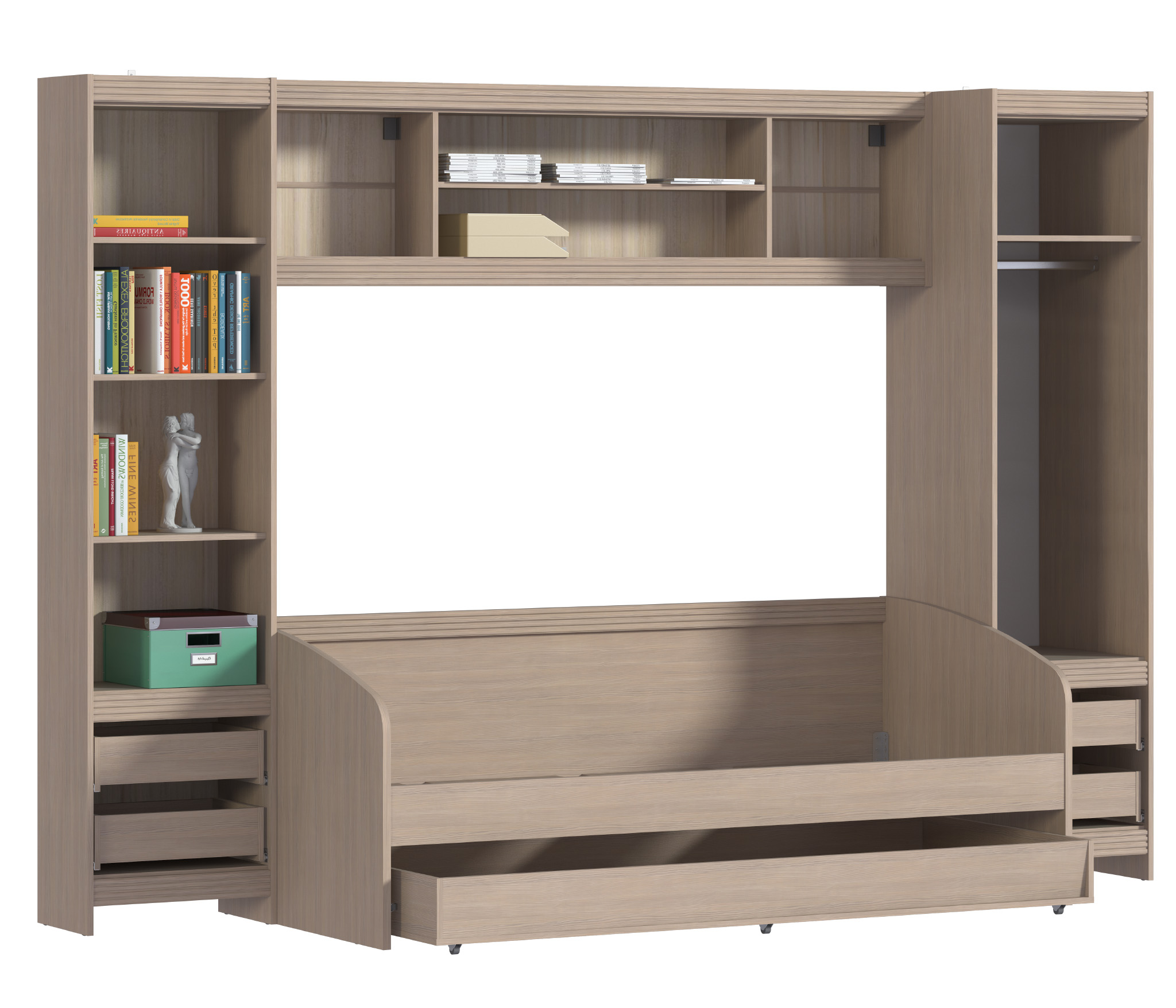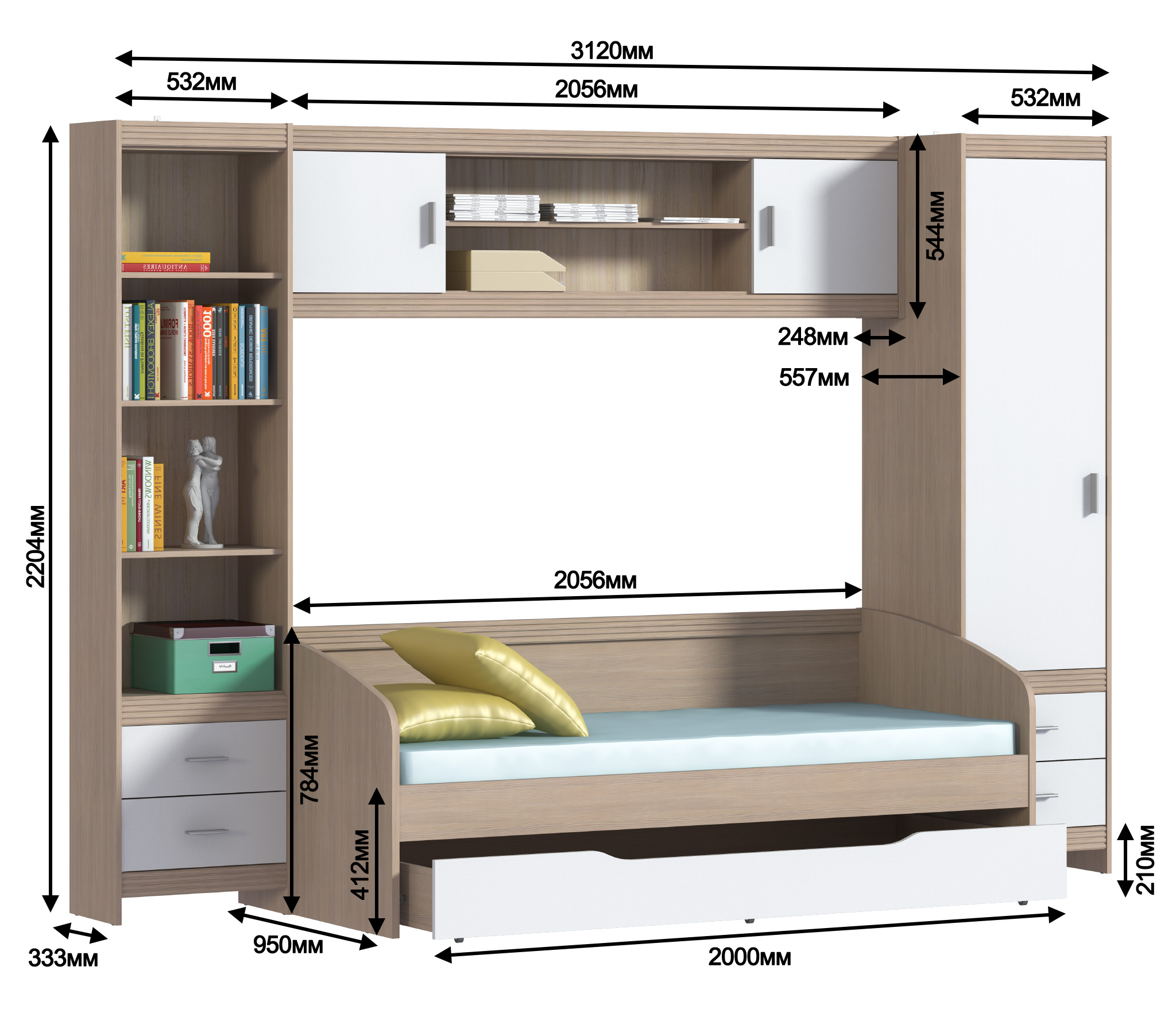 Дакота СБ-2093 Кровать с ящиком Сосна Авола Шампань,Белый глянец,Белый