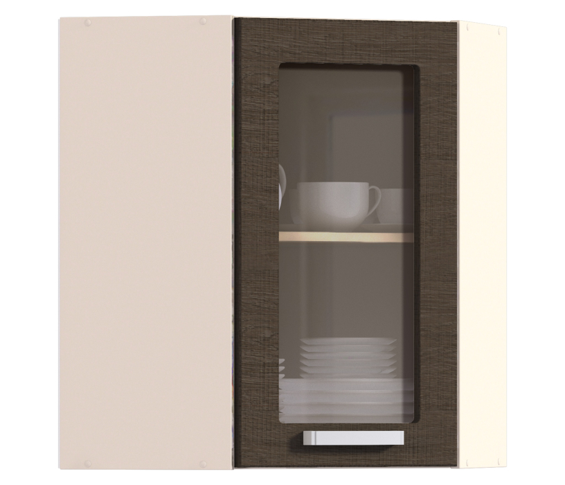 Регина РПУ-60 полка угловая с витриной навесная часть кухонного гарнитура, призвана заполнить угловое пространство, чтобы использовать его максимально эффективно.