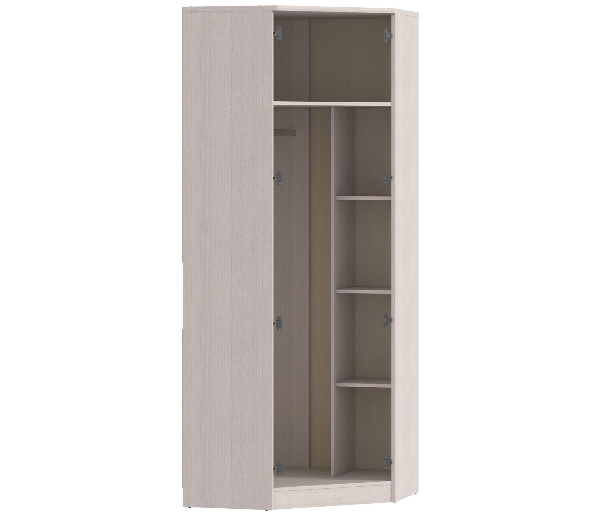 Лаконичный дизайн, продуманная фурнитура, прочные крепёжные механизмы говорят о достойном качестве углового шкафа Грация, который можно рассматривать как отдельный предмет интерьера, а можно стилизовать в гарнитур.
