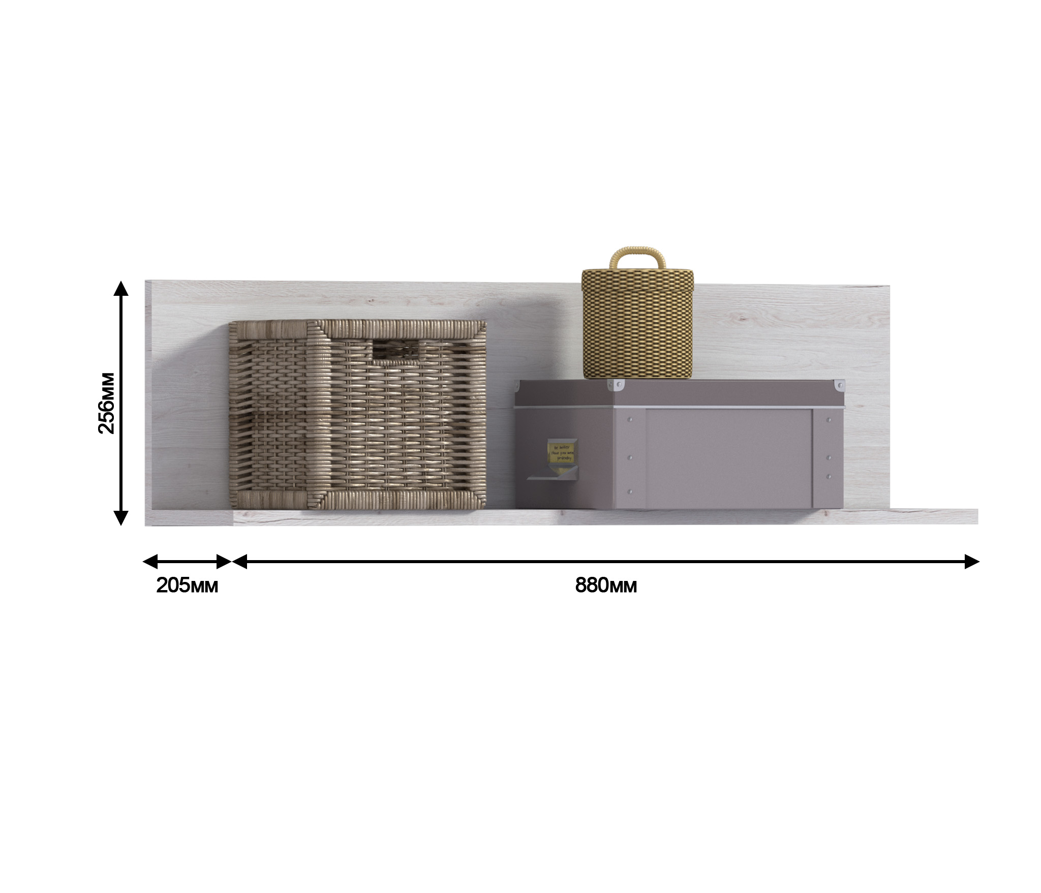 Габаритные размеры – ширина 88, высота 25 см и глубина 20 см. Полка Амели компактна и имеет открытую конструкцию.
