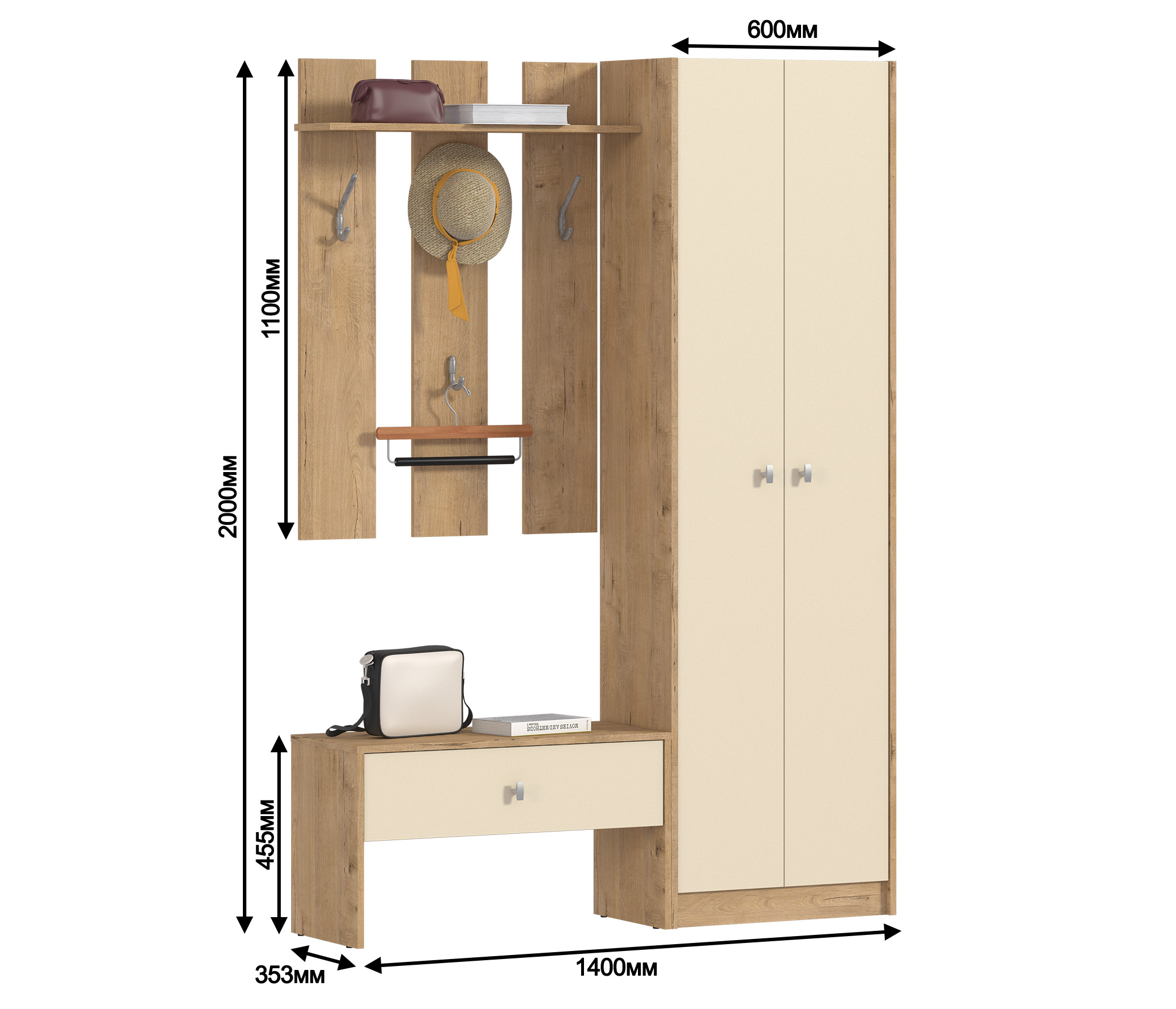 Сидней СБ-2580 Вешалка Дуб БунраттиСидней СБ-2584 Тумба с ящиком Дуб Бунратти/Ваниль