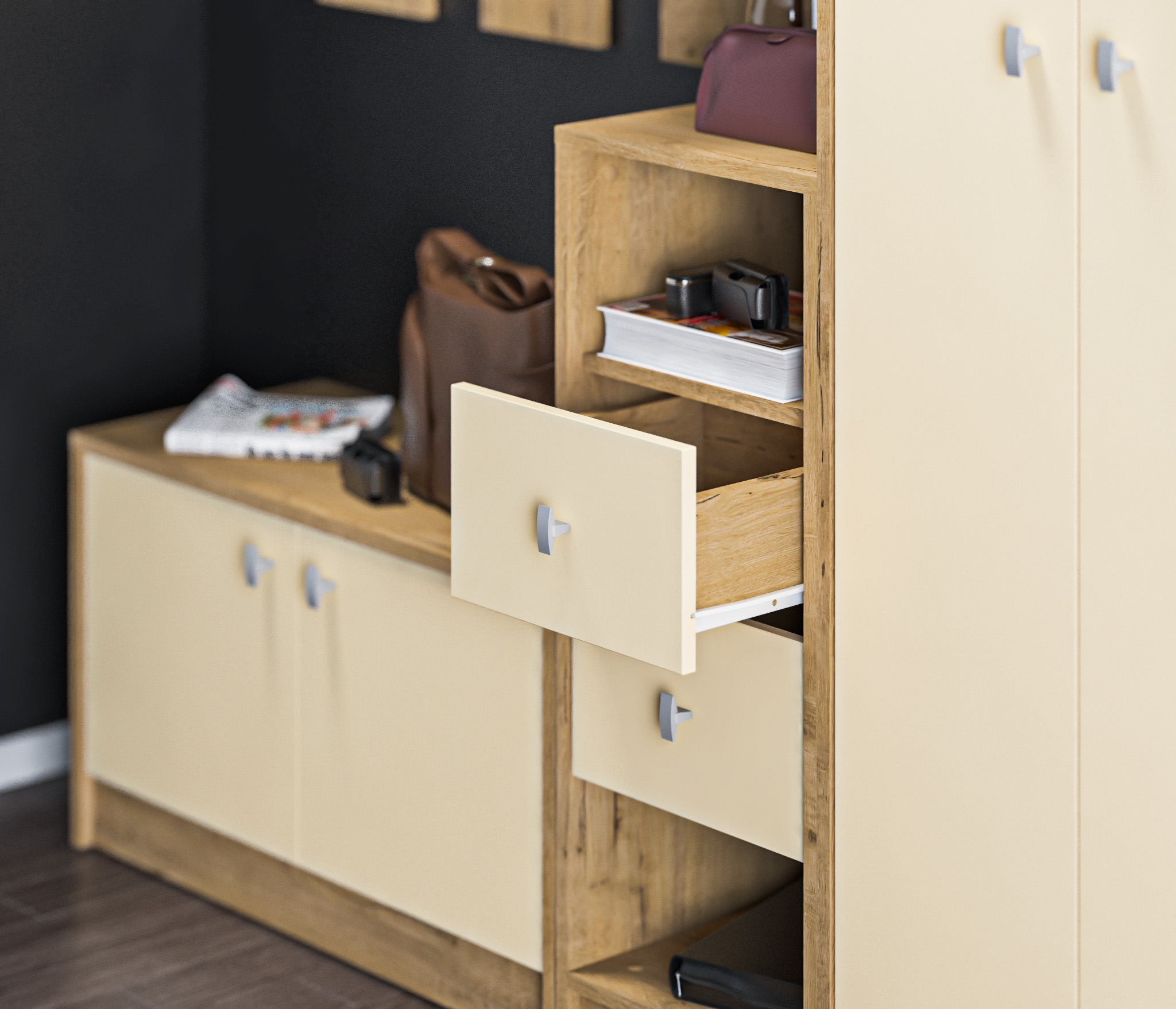 В 2-х дверной тумбе не хватает полки, доделали сами, и крючки лучше бы металлические, а здесь пластик