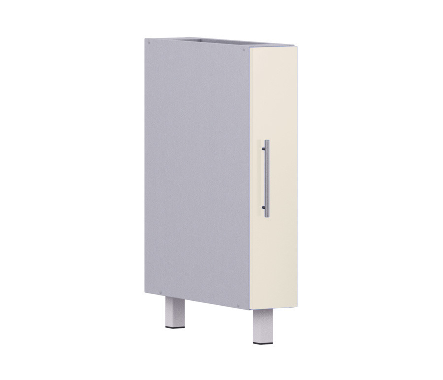 Узкая секция в современном стиле хорошо дополнит вашу кухонную систему. Изготовлена с использованием долговечных экологически чистых материалов. Внутри есть два отделения. Данный стол подходит для хранения различной кухонной утвари, моющих средств. Имеет одну опору. Модель выпускается в нескольких цветах.