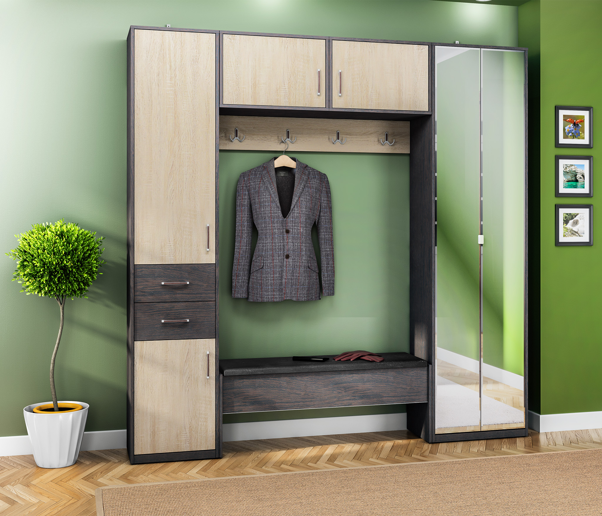 У нас узкий и длинный коридор. Афина как раз подошла. Банкетка тумба зеркало -обувница пенал и 4 шкафа. Все встало как надо. Покупаем не перый раз. Качественно.