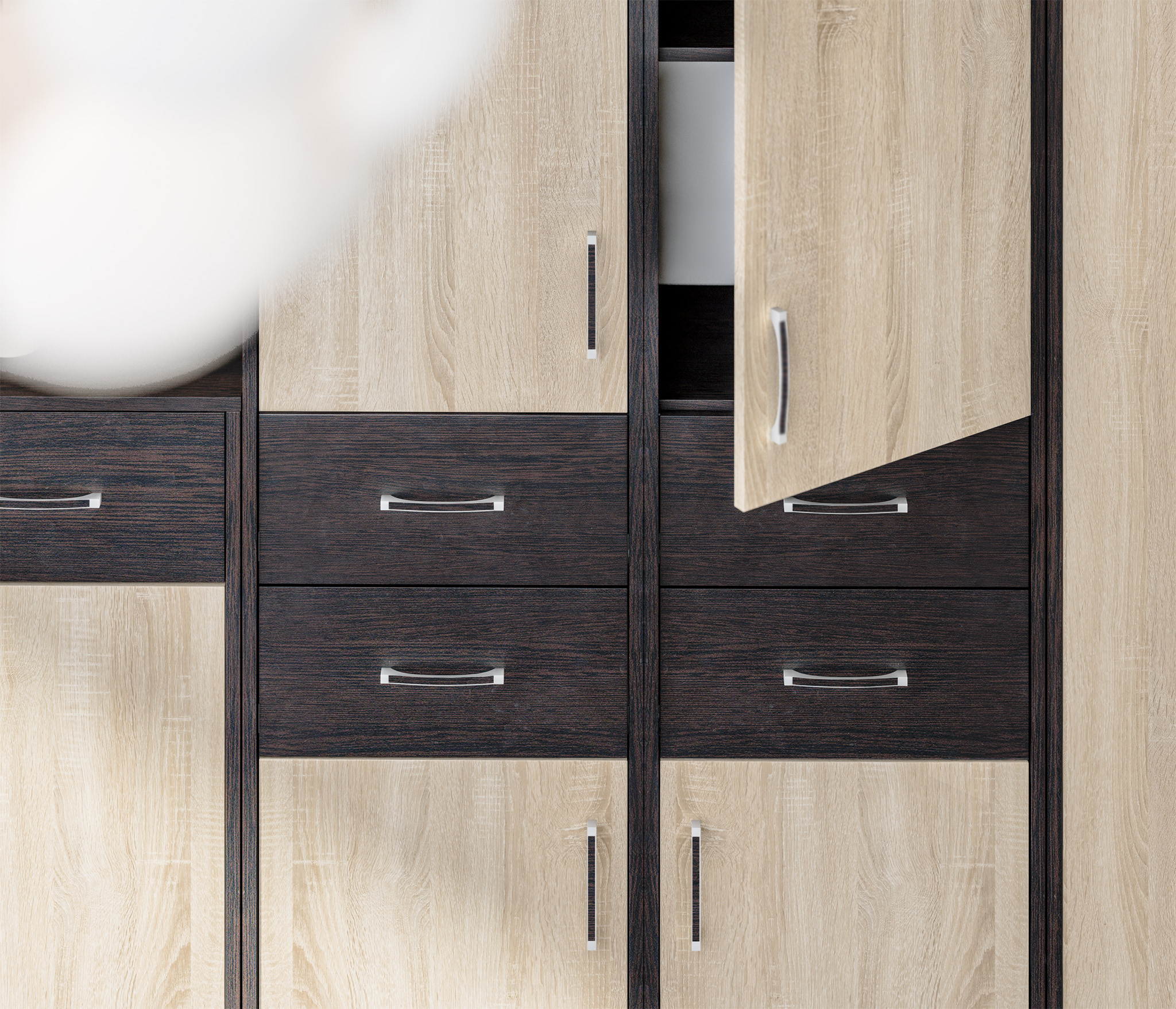 Шкаф с ящиками Афина СБ-2232 – универсальная и компактная система хранения. Он одинаково органично будет смотреться в прихожей, спальне, офисном помещении или в комнате подростка. Его можно использовать как соло, так и в составе гарнитура Афина.