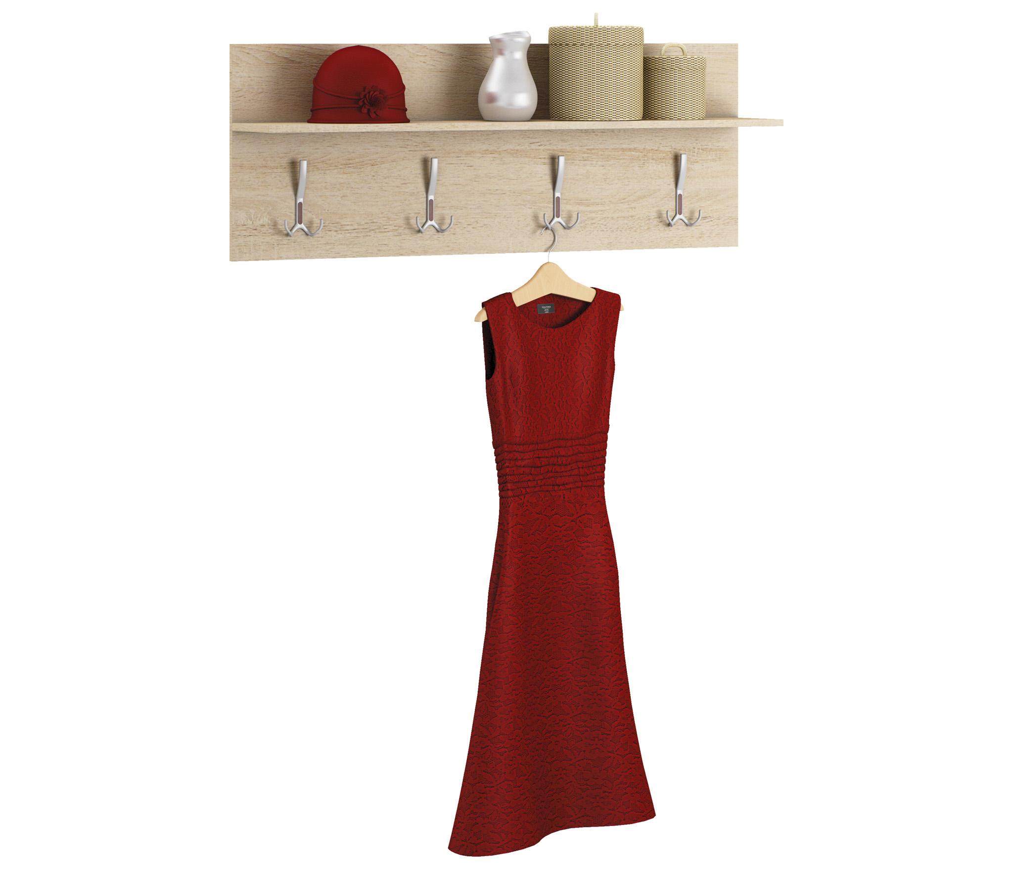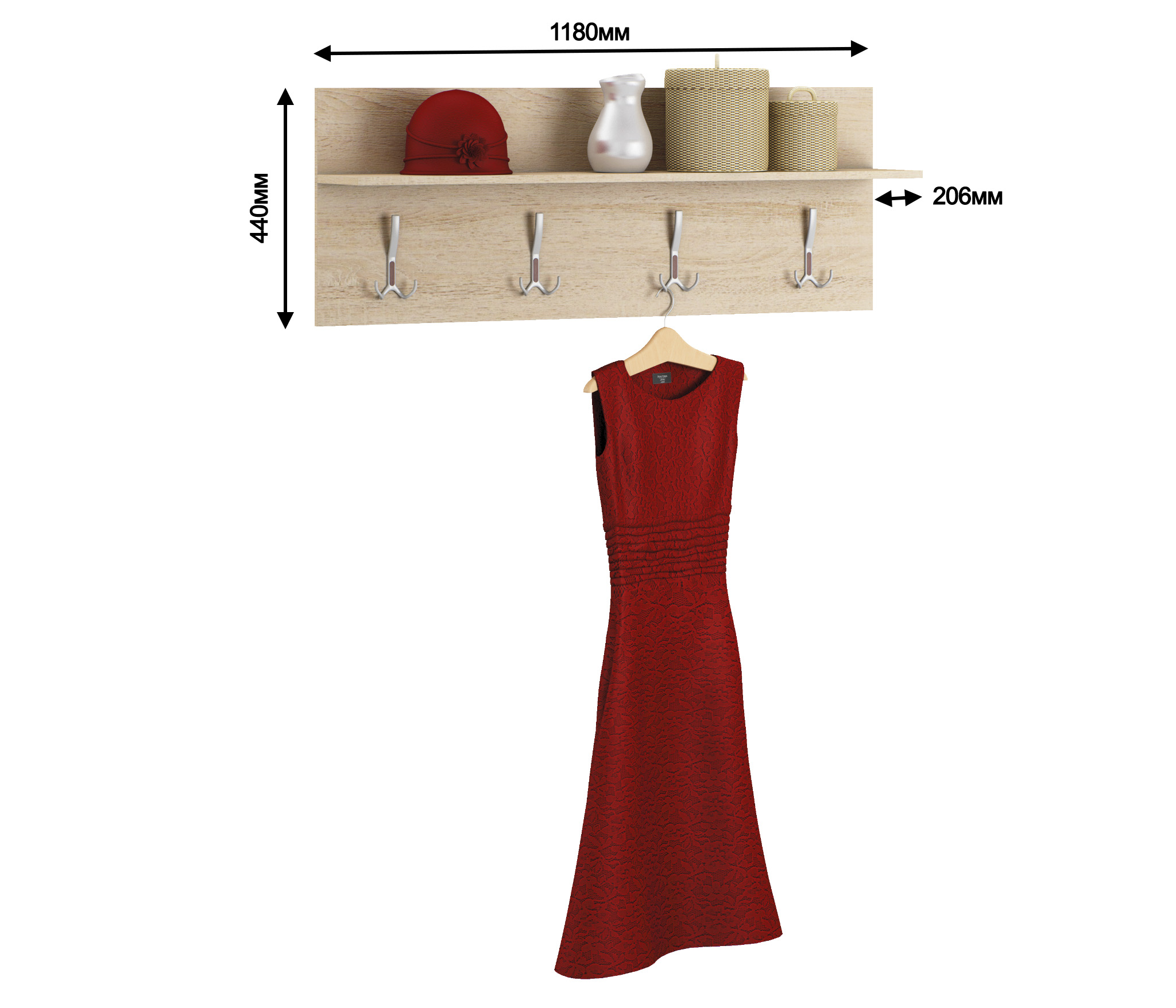Простая, красивая полка, на один крючок можно повесить три куртки.