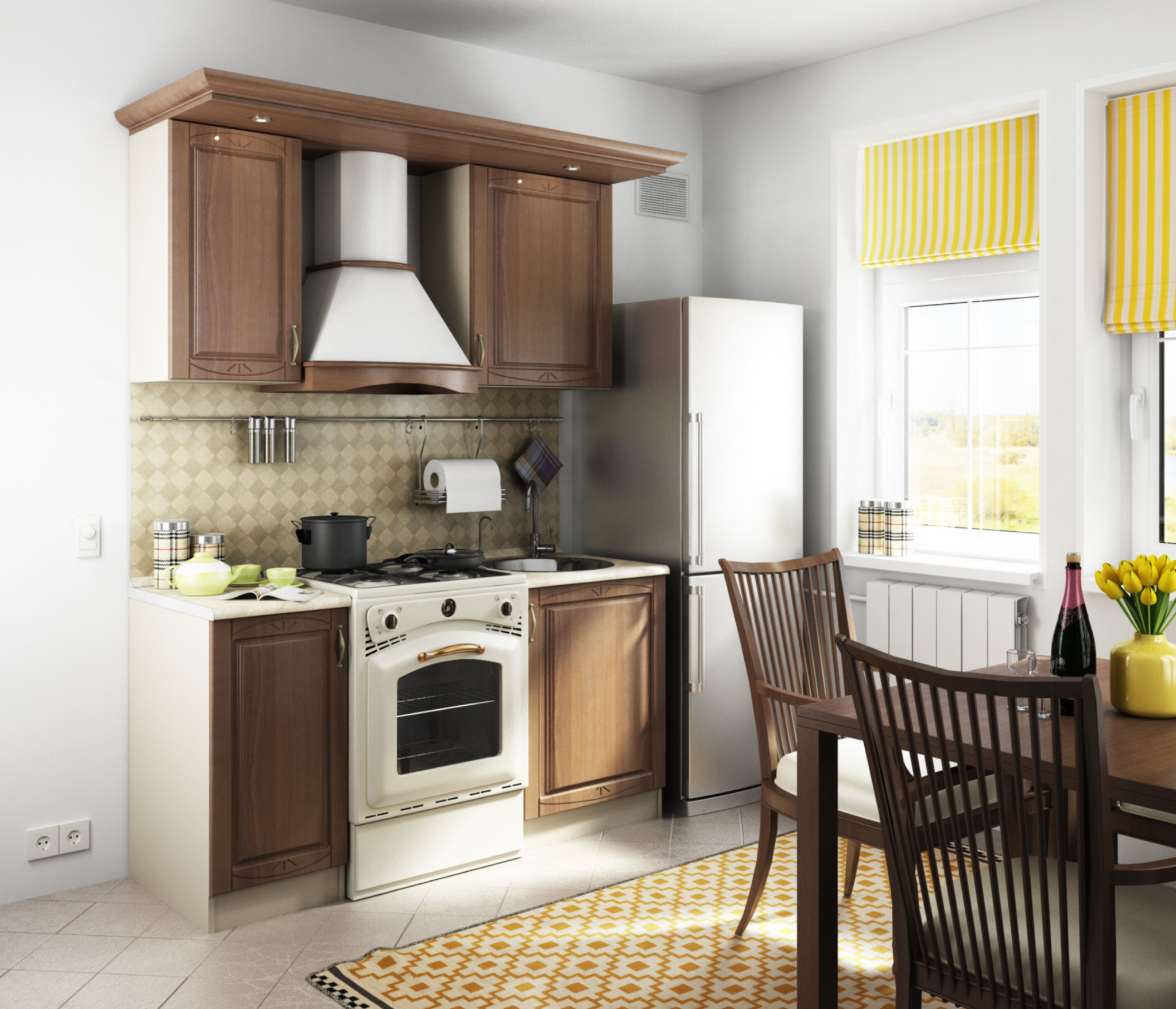 Живем в "хрущевке" и там кухни сами знаете какие, для одного человека. Регина, мини-кухня, как раз для нас вариант. Такая модная получилась, смотрится великолепно. Мне шкафов достаточно, т.к никогда не покупала по несколько комплектов кастрюль и сковородок. Все помещается при разумном подходе.